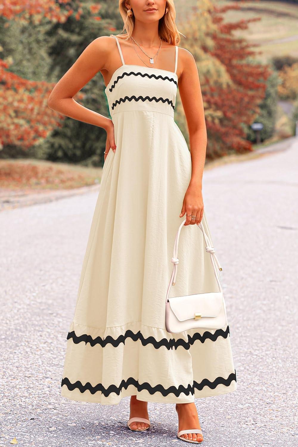 PRETTYGARDEN Women’s 2025 Summer Flowy Maxi Dress Casual Sleeveless Spaghetti Strap Ruffle Beach Long Dresses(Light Beige)