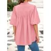 PRETTYGARDEN Women's 2025 Summer Short Lantern Sleeve Tops Loose Fit Button Down Shirt Casual Pleated V Neck Blouses(Pink)