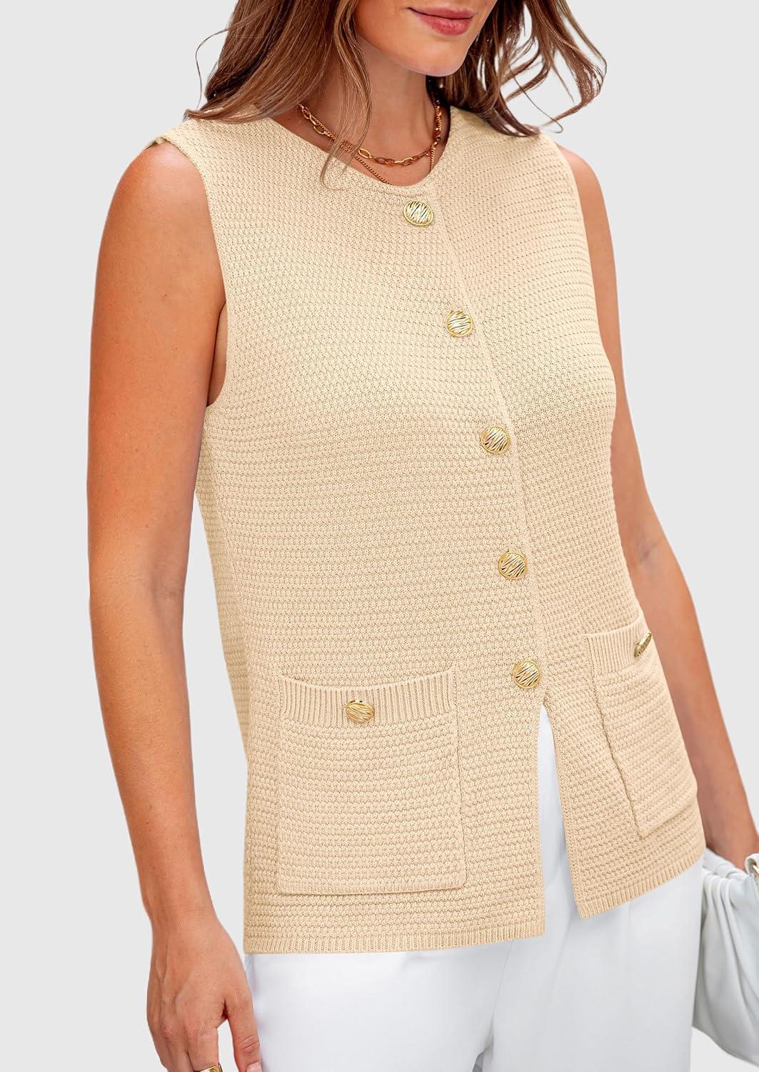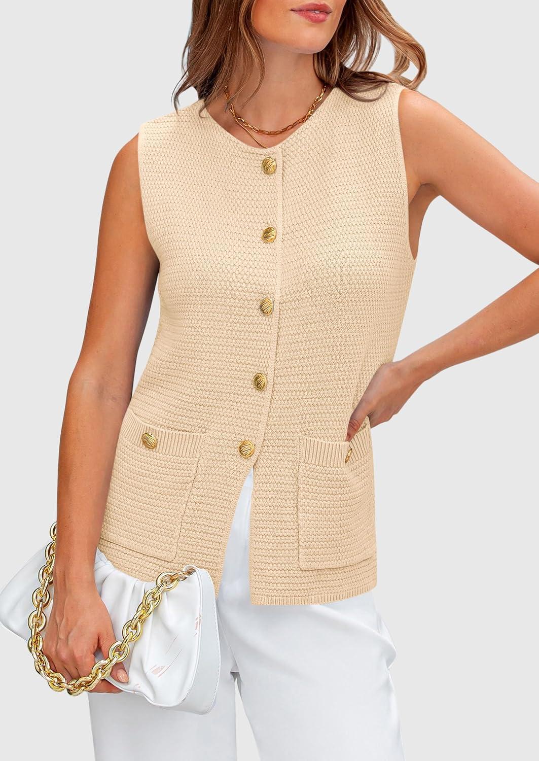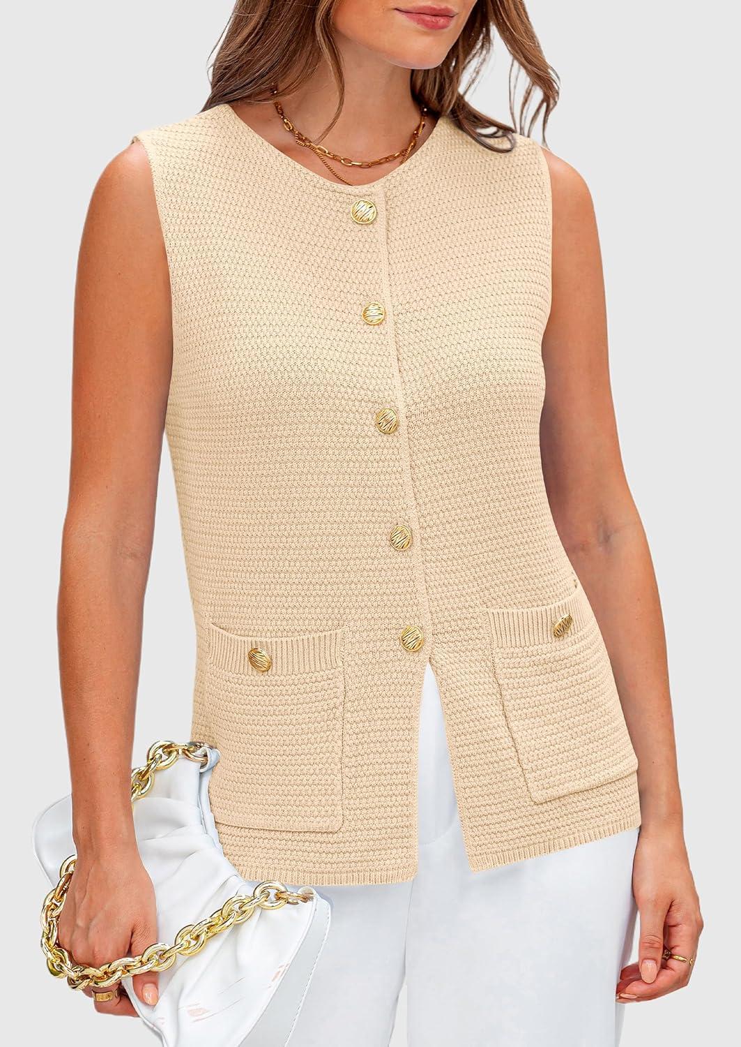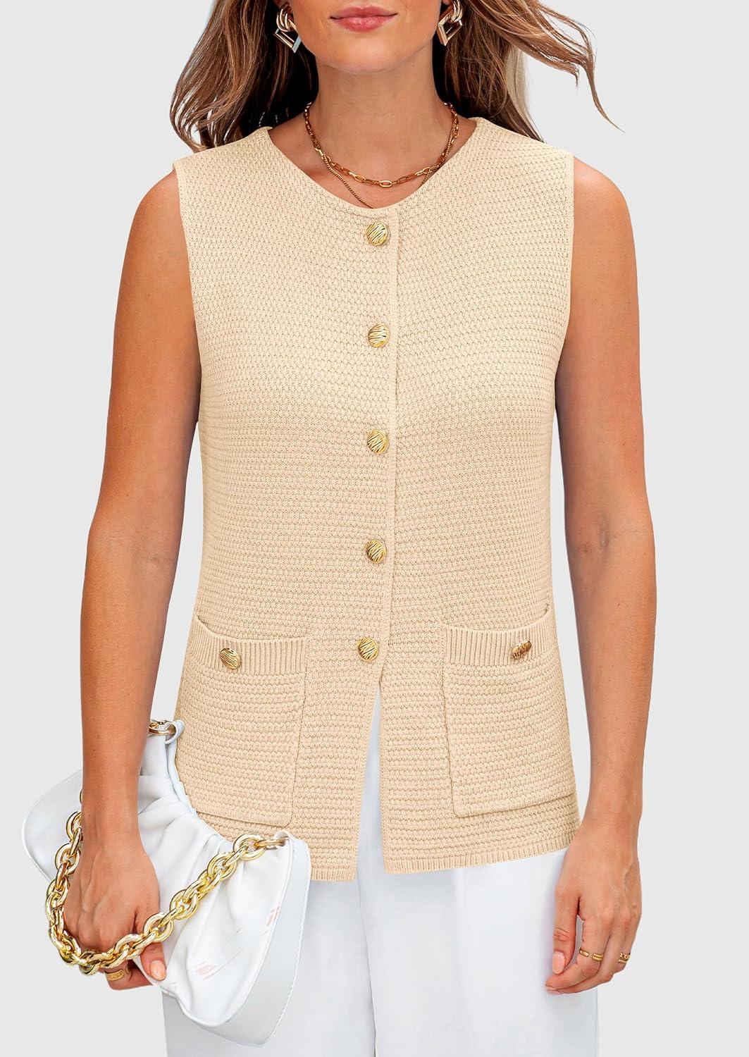 PRETTYGARDEN Women's 2025 Summer Sweater Vest Sleeveless Knit Cardigan Button Down Tank Tops Trendy Business Casual Outfits(Apricot)