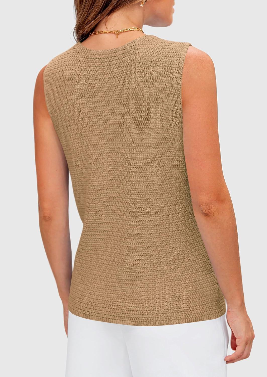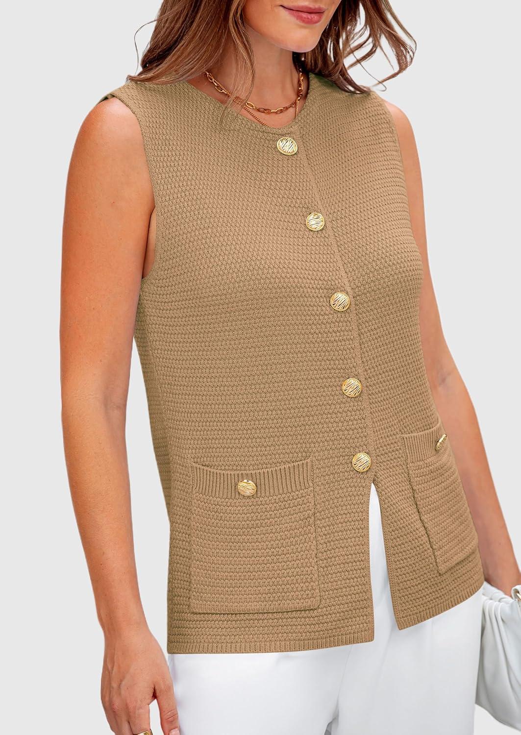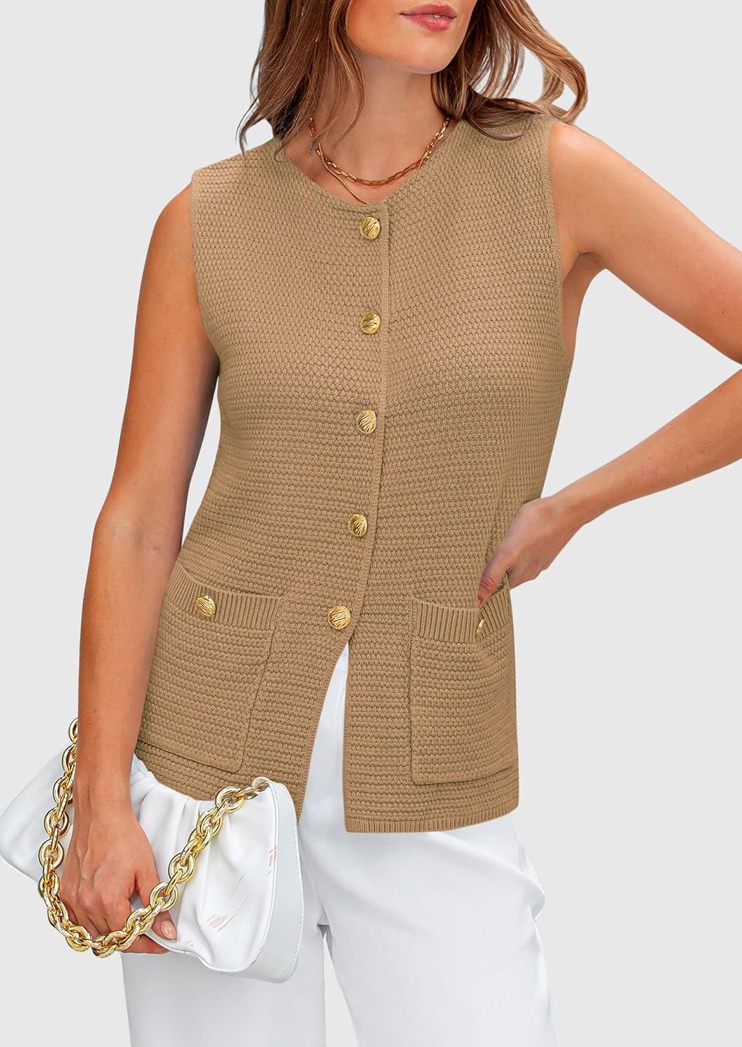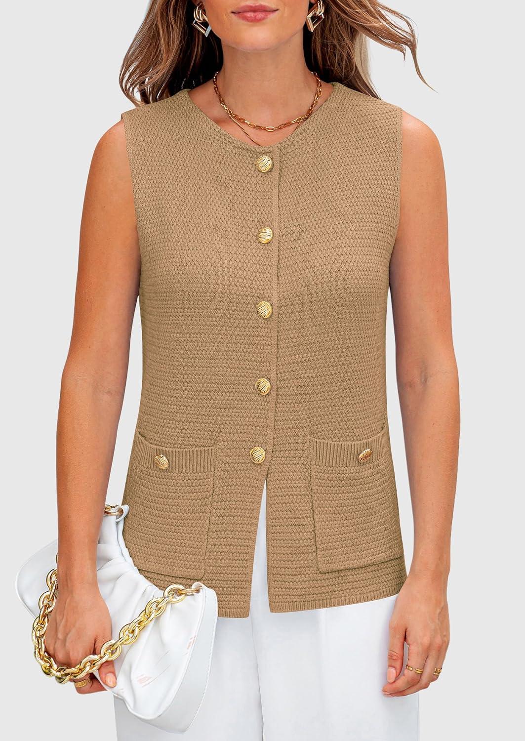 PRETTYGARDEN Women's 2025 Summer Sweater Vest Sleeveless Knit Cardigan Button Down Tank Tops Trendy Business Casual Outfits(Khaki)