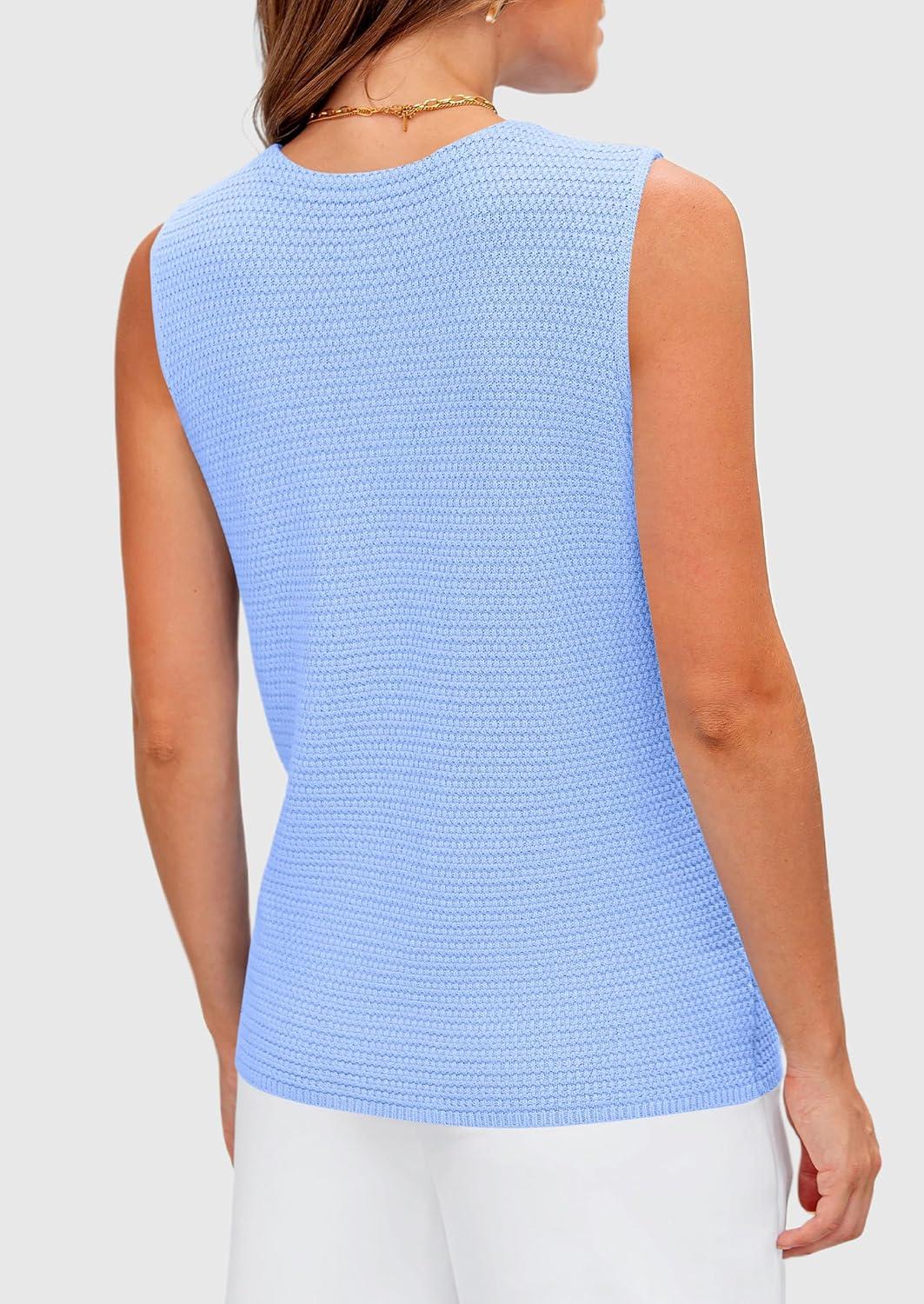 PRETTYGARDEN Women's 2025 Summer Sweater Vest Sleeveless Knit Cardigan Button Down Tank Tops Trendy Business Casual Outfits(Light Blue)