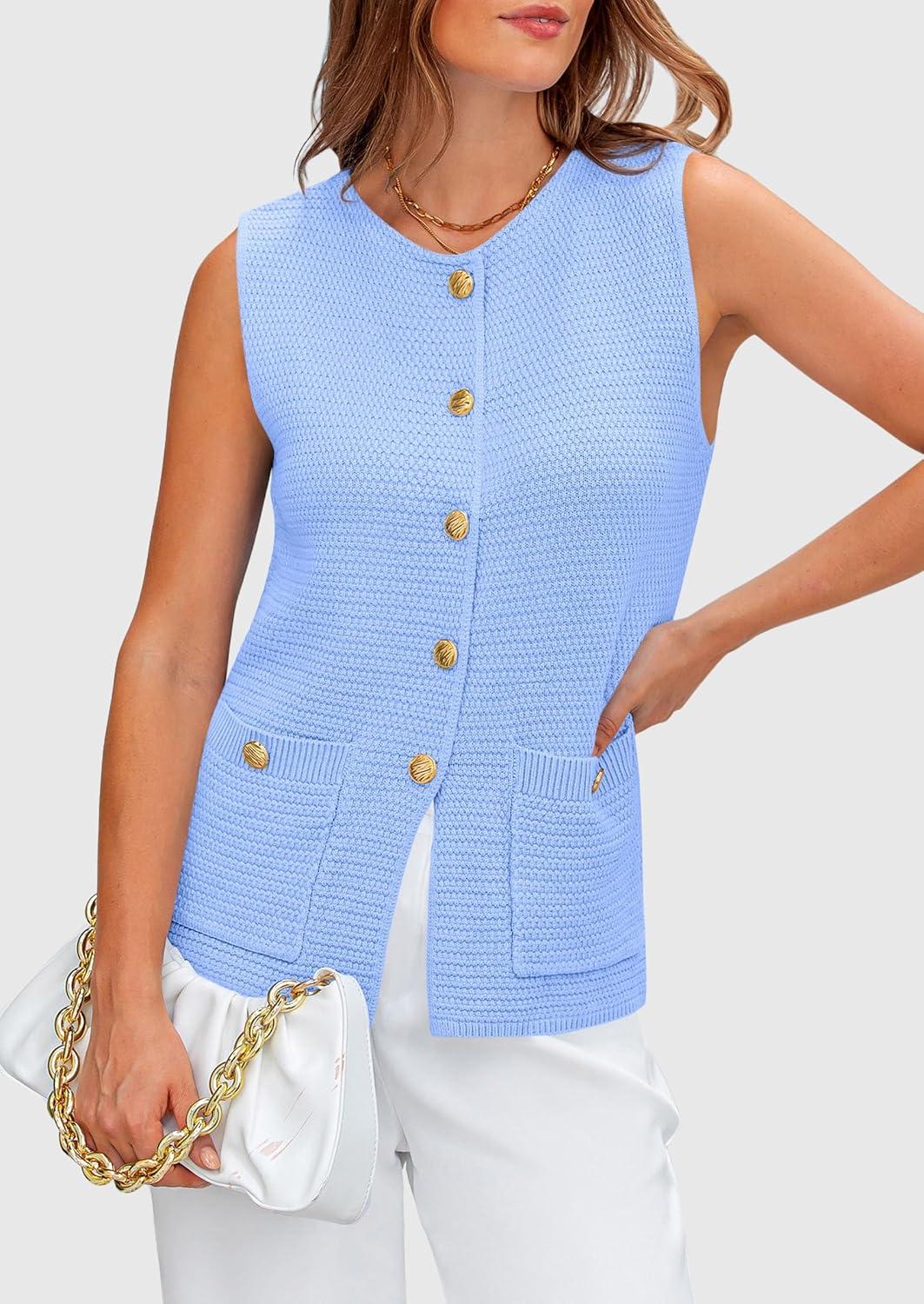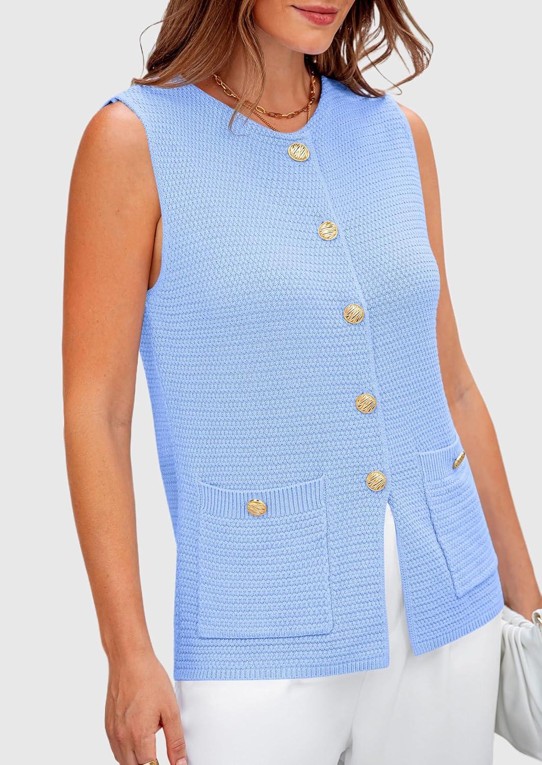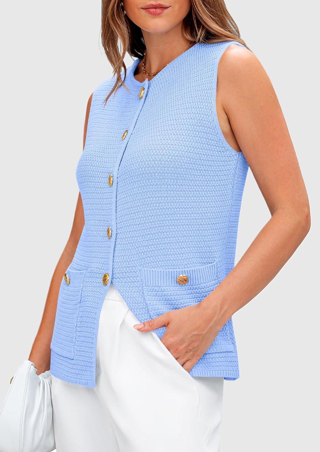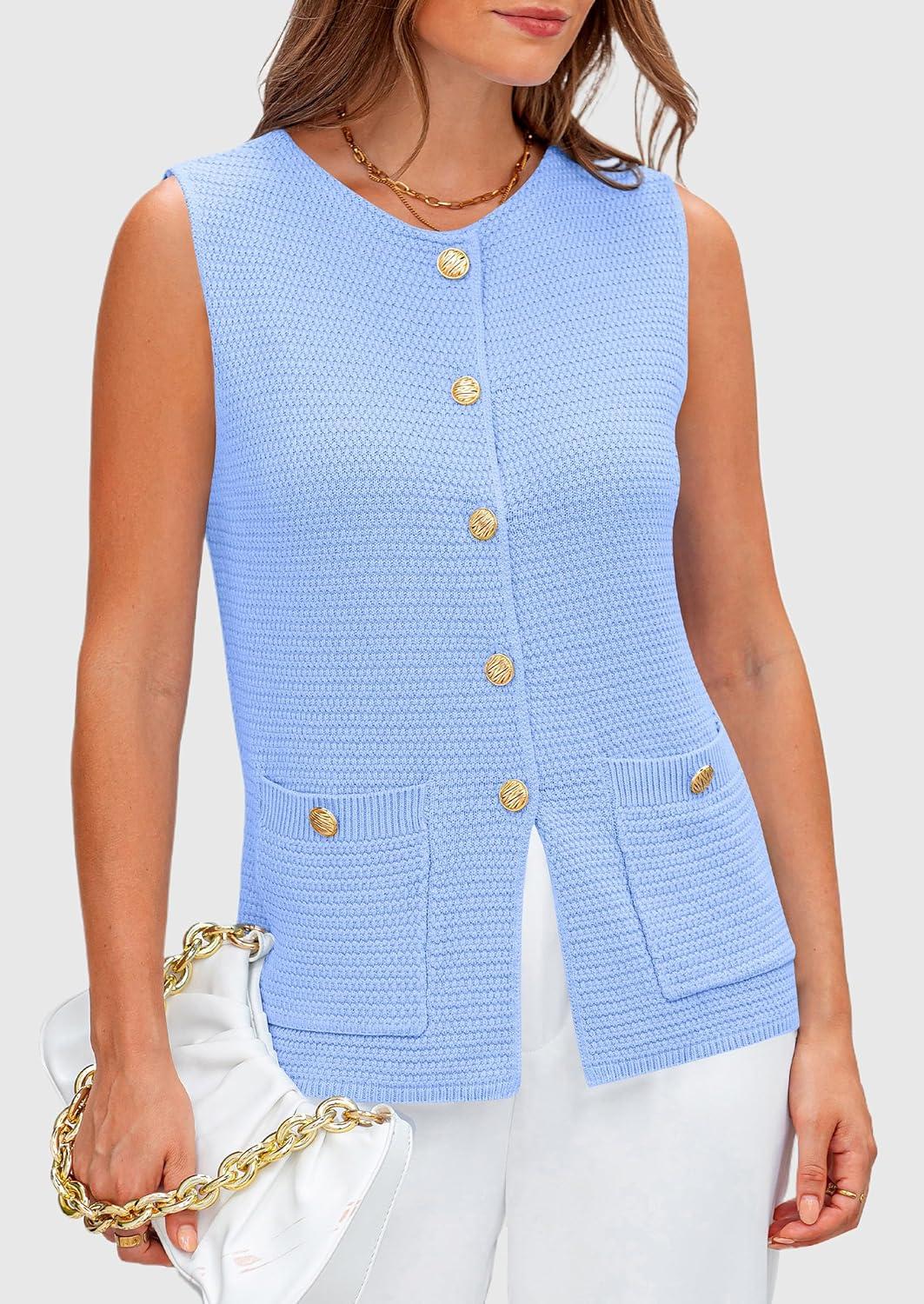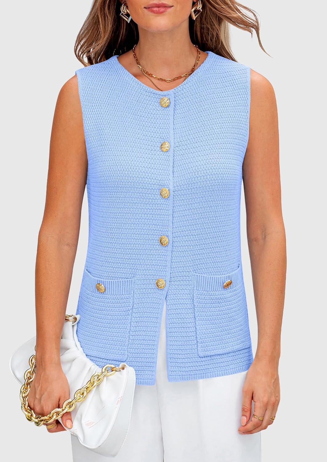 PRETTYGARDEN Women’s 2025 Summer Sweater Vest Sleeveless Knit Cardigan Button Down Tank Tops Trendy Business Casual Outfits(Light Blue)