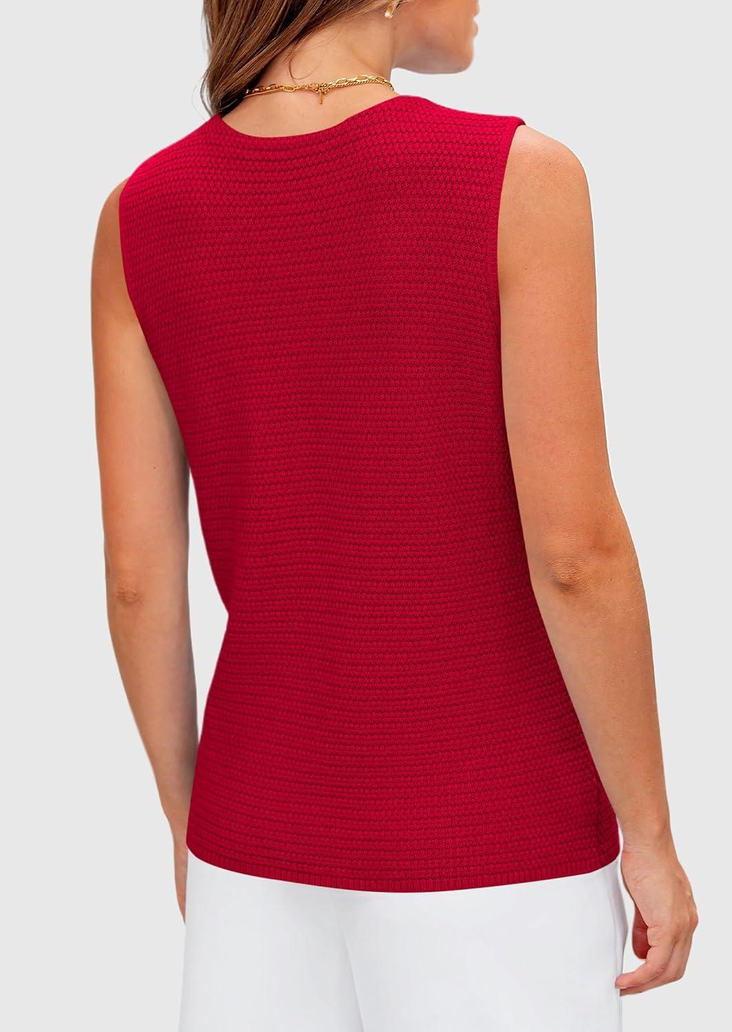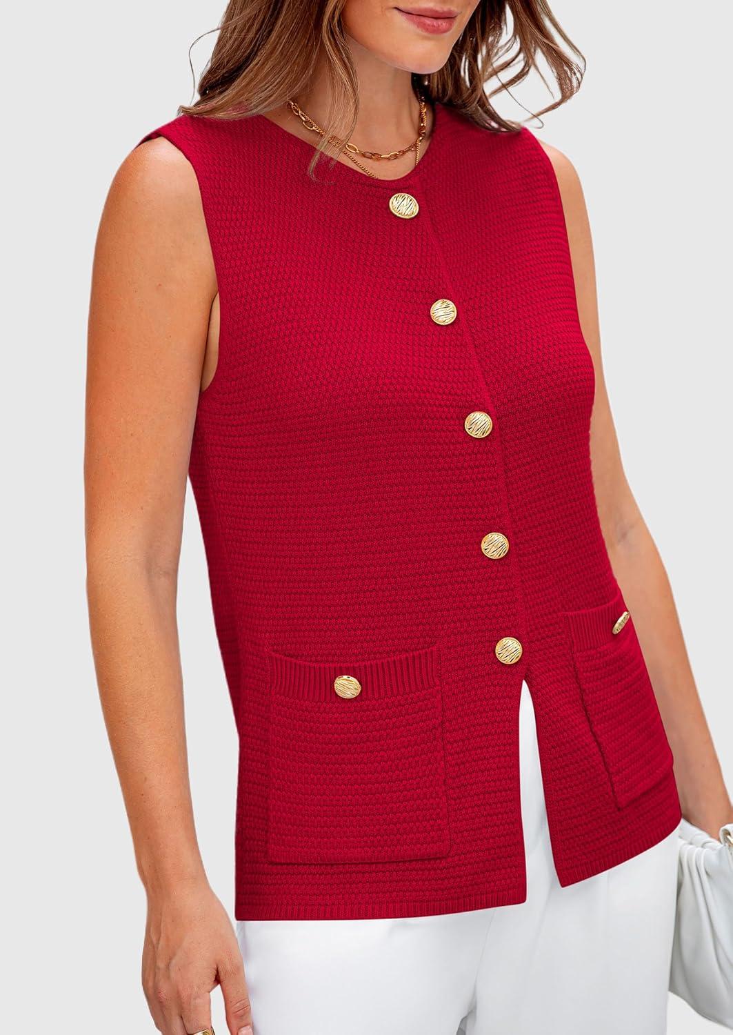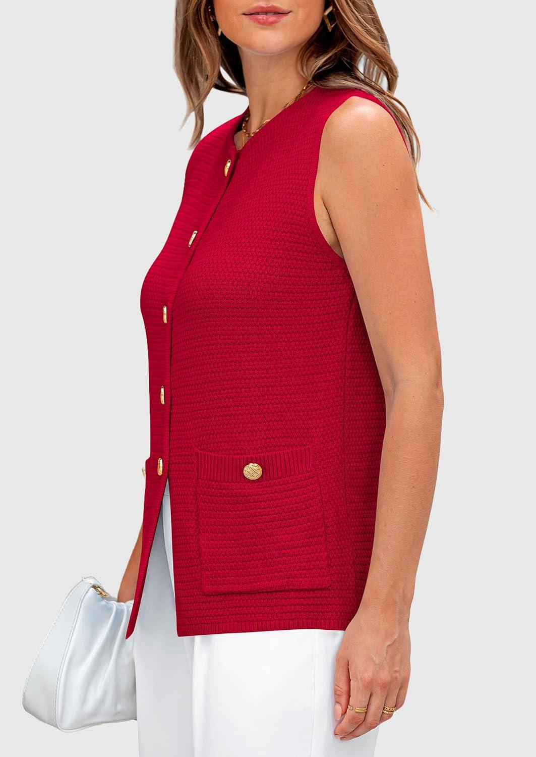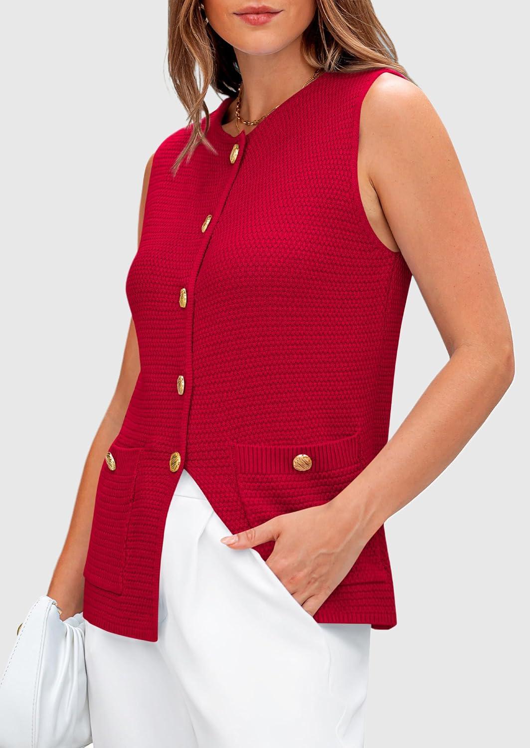 PRETTYGARDEN Women's 2025 Summer Sweater Vest Sleeveless Knit Cardigan Button Down Tank Tops Trendy Business Casual Outfits(Red)