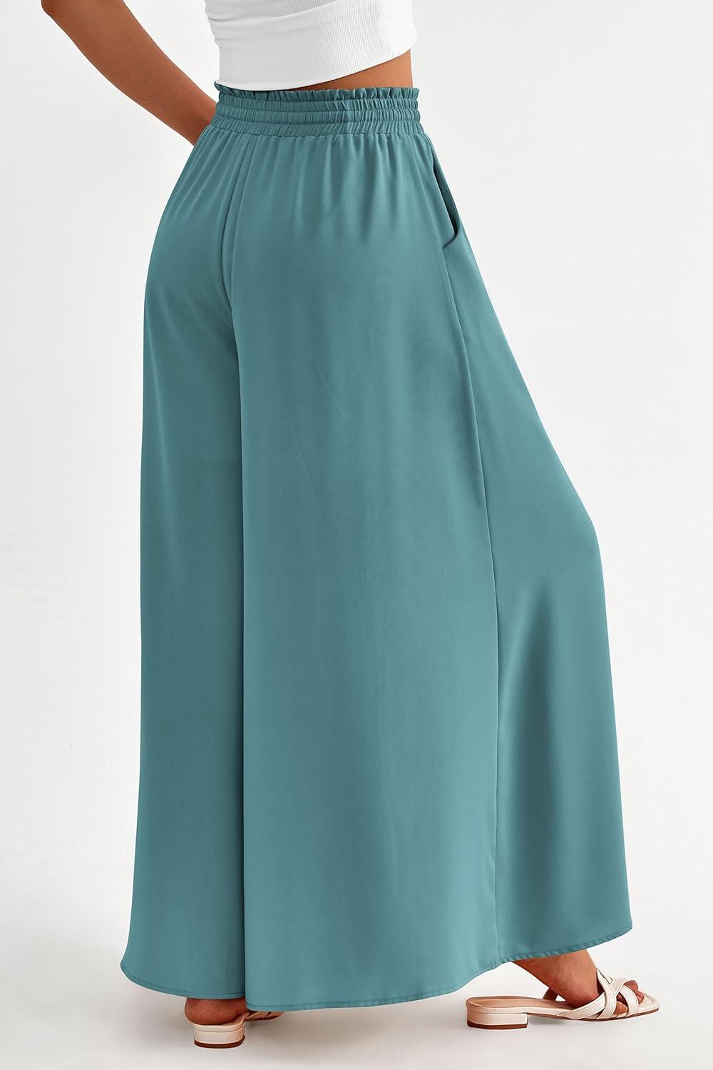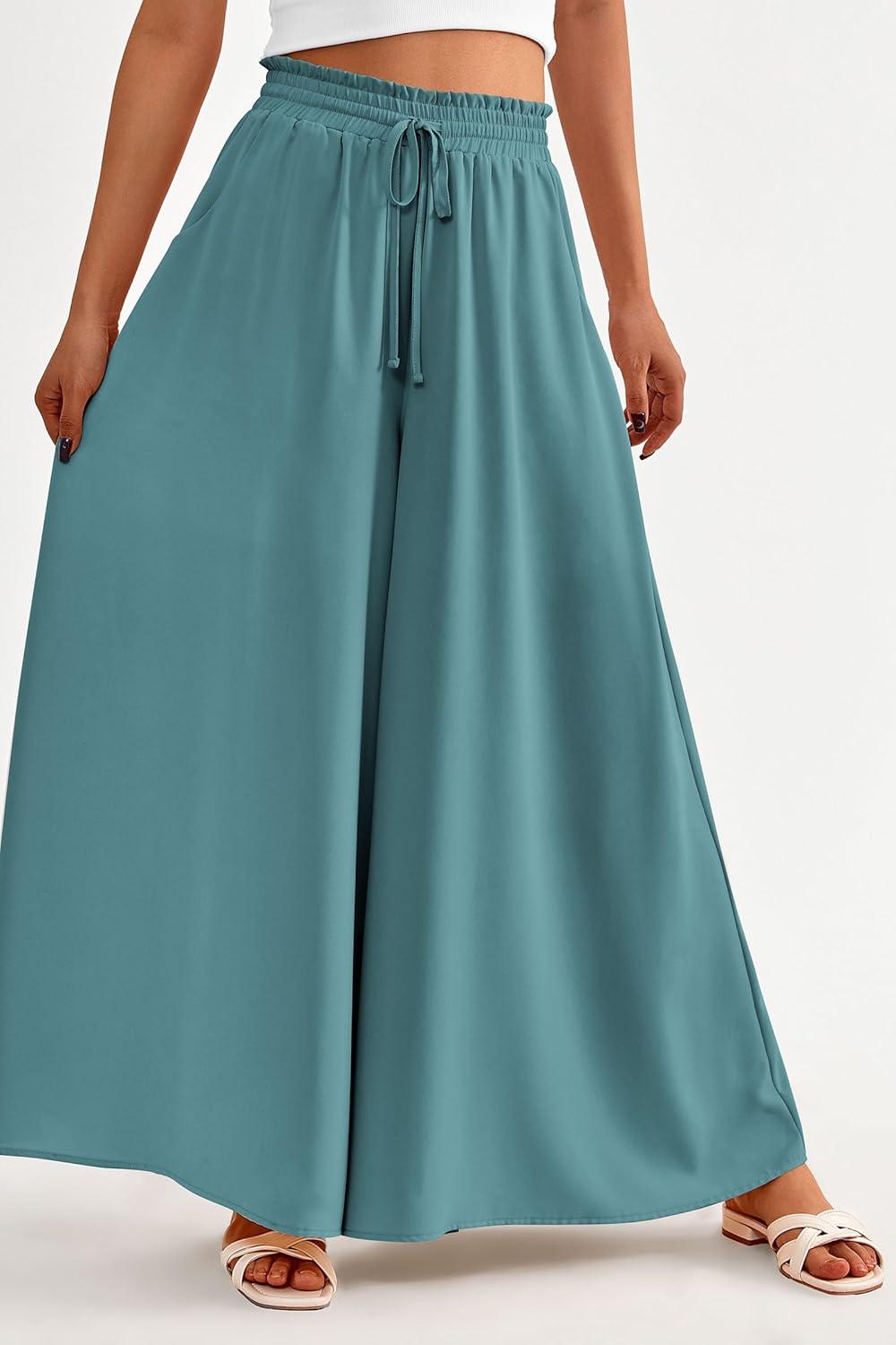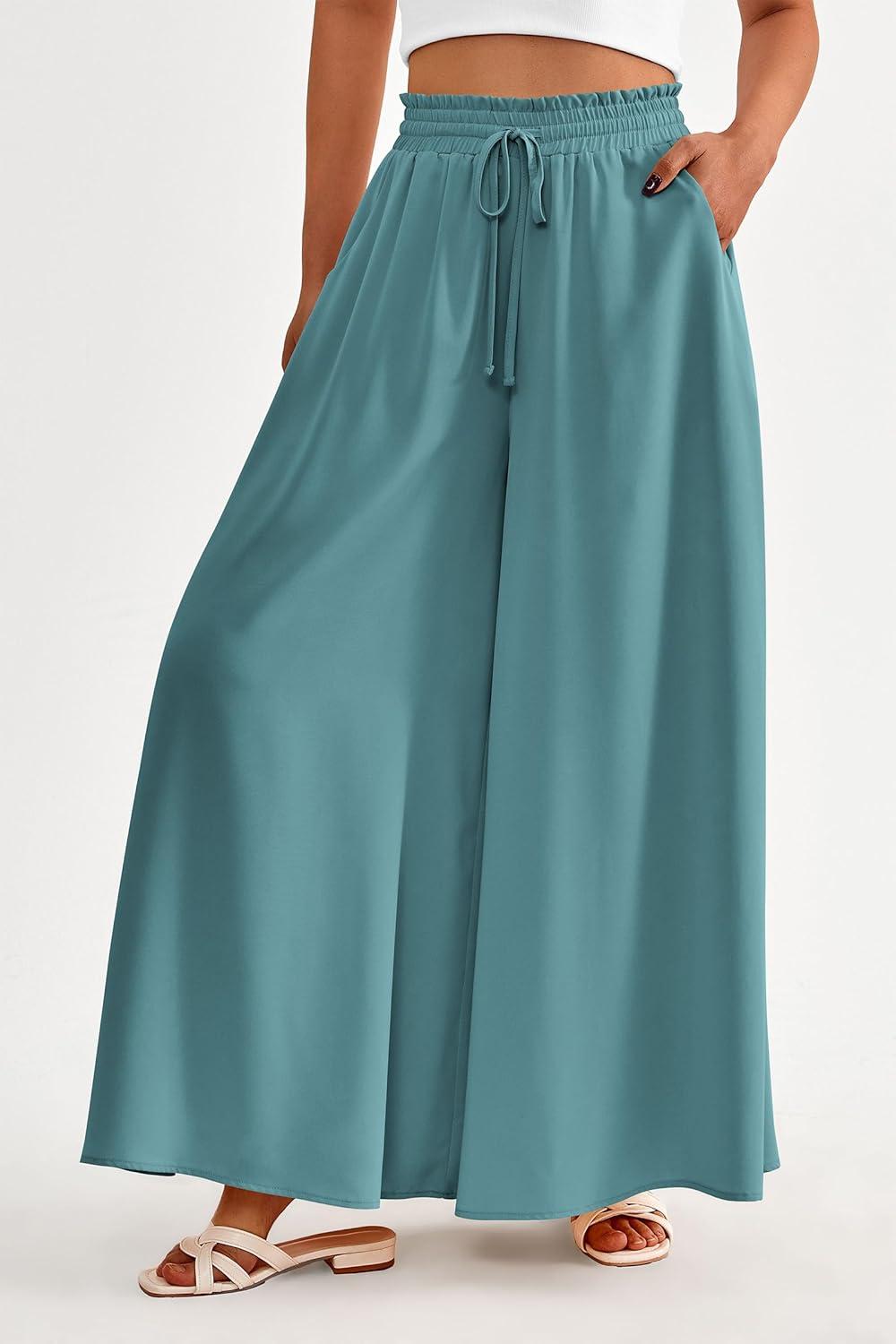 PRETTYGARDEN Women's 2025 Summer Wide Leg Palazzo Pants High Waisted Flowy Pockets Trendy Casual Lounge Boho Beach Trousers(Blue Green)