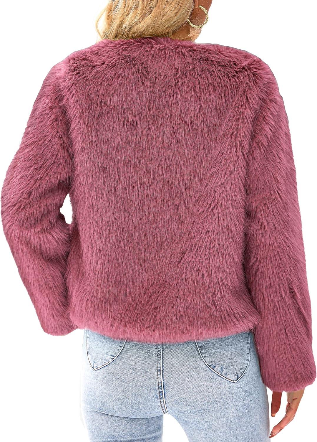 PRETTYGARDEN Women's 2025 Winter Coats Fleece Cropped Jacket Faux Fur Long Sleeve Pockets Shaggy Warm Outerwear Fall Clothes(Bean Paste Red)