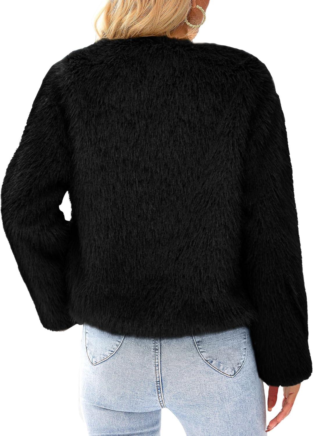PRETTYGARDEN Women's 2025 Winter Coats Fleece Cropped Jacket Faux Fur Long Sleeve Pockets Shaggy Warm Outerwear Fall Clothes(Black)