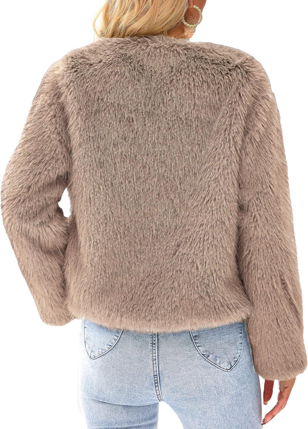 PRETTYGARDEN Women’s 2025 Winter Coats Fleece Cropped Jacket Faux Fur Long Sleeve Pockets Shaggy Warm Outerwear Fall Clothes(Khaki)
