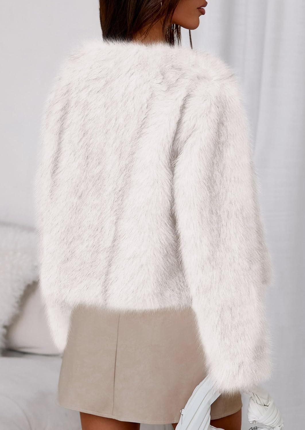 imagePRETTYGARDEN Womens 2025 Winter Coats Fluffy Cropped Faux Fur Jacket Long Sleeve Open Front Shaggy Outerwear Trendy ClothesWhite
