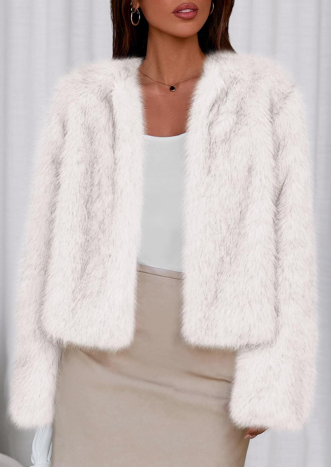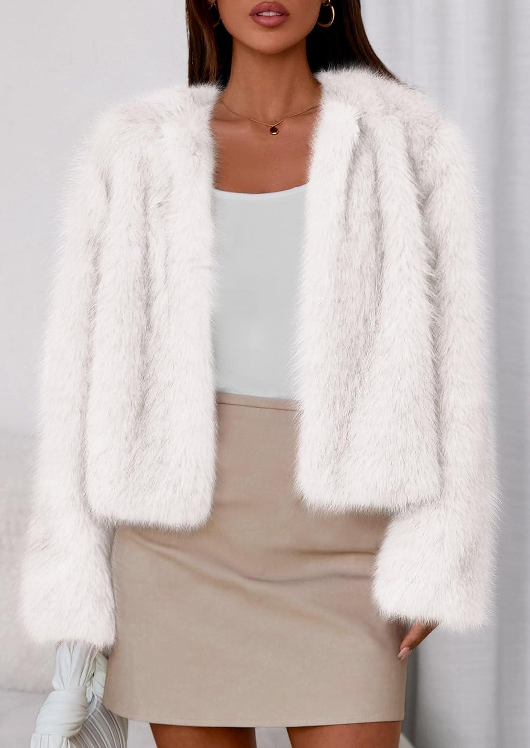 PRETTYGARDEN Womens 2025 Winter Coats Fluffy Cropped Faux Fur Jacket Long Sleeve Open Front Shaggy Outerwear Trendy Clothes(White)