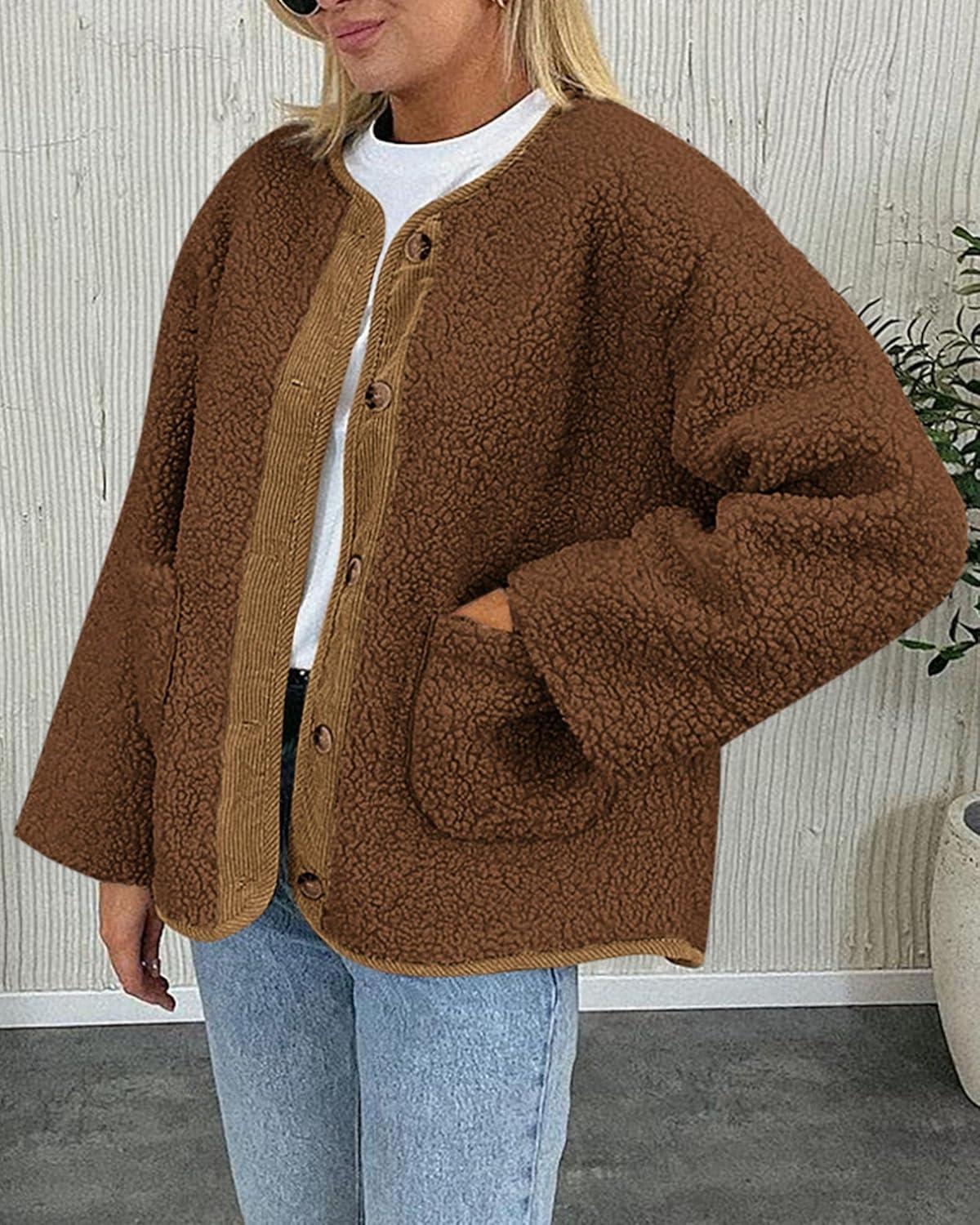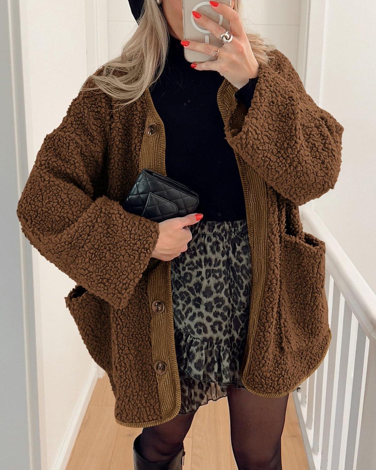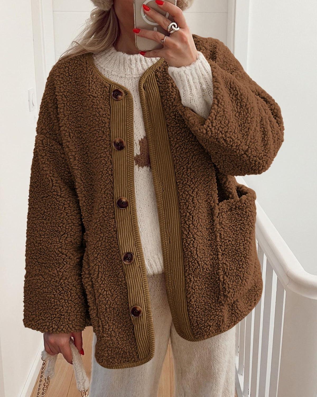 PRETTYGARDEN Women’s 2025 Winter Coats Long Sleeve Button up Fuzzy Sherpa Fleece Jackets Outerwear Fall Fashion Clothes(Brown)