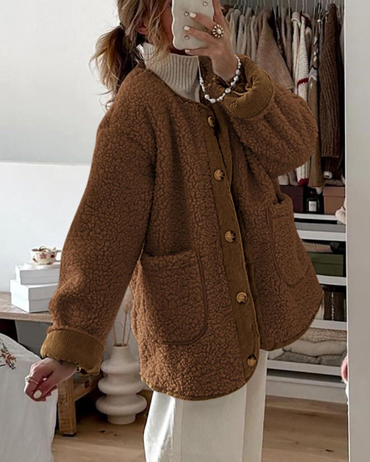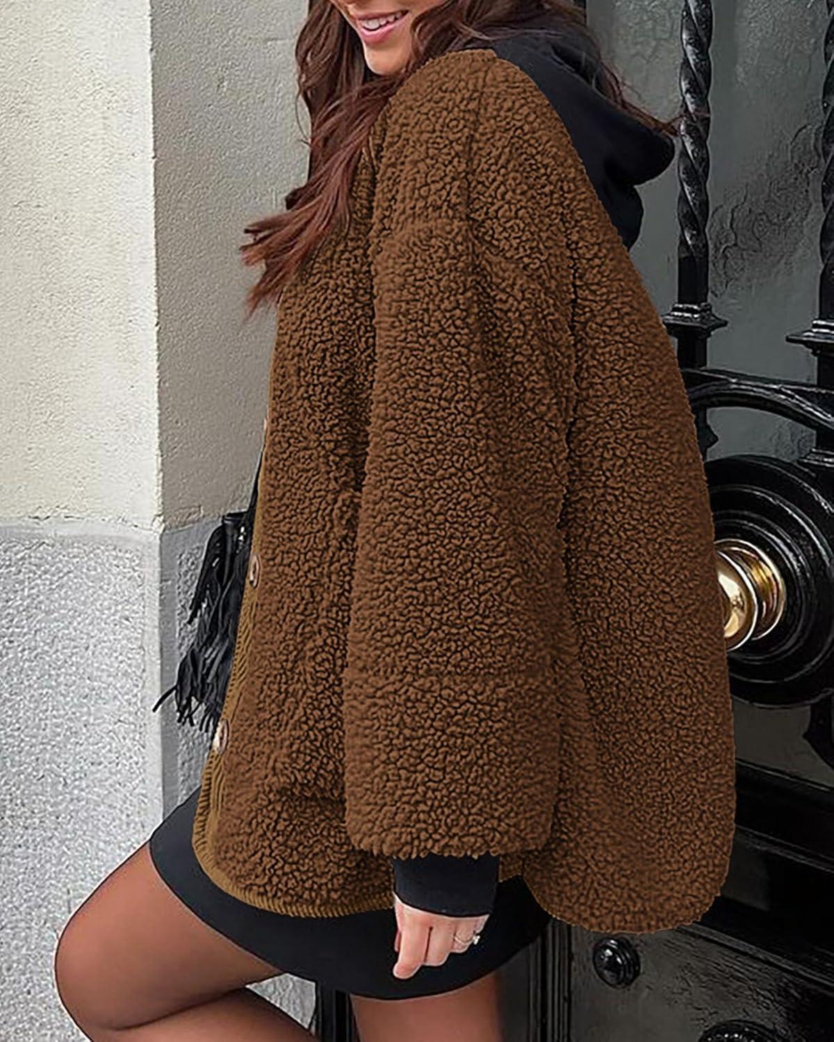 PRETTYGARDEN Women's 2025 Winter Coats Long Sleeve Button up Fuzzy Sherpa Fleece Jackets Outerwear Fall Fashion Clothes(Brown)