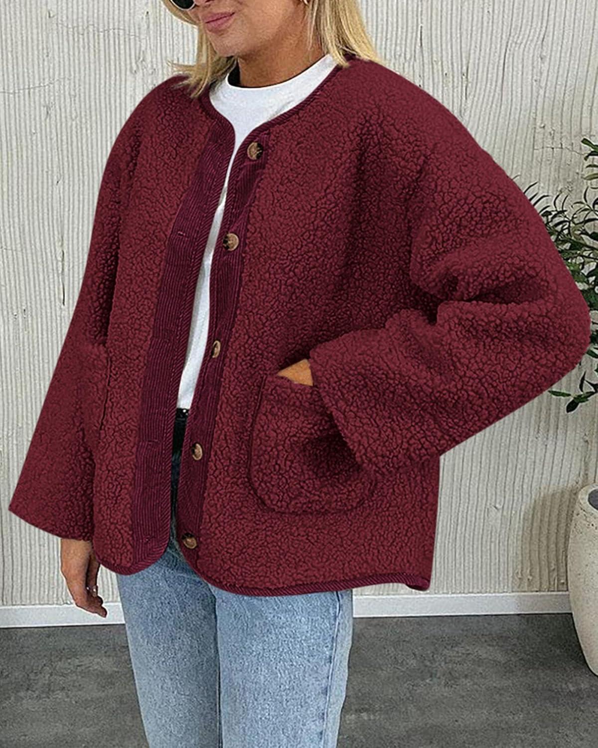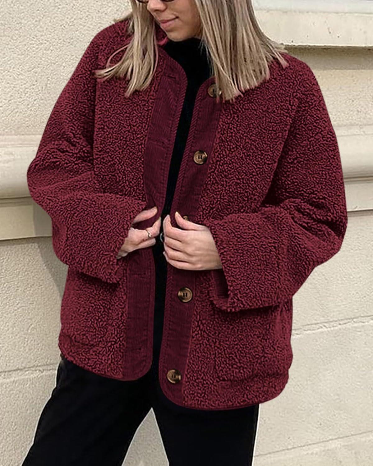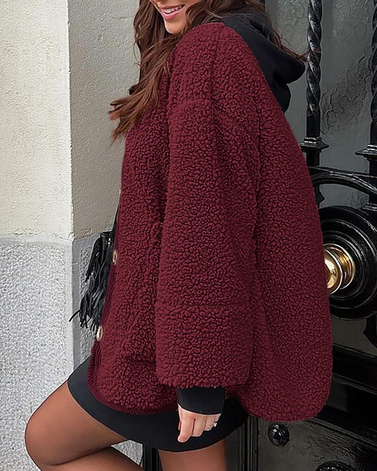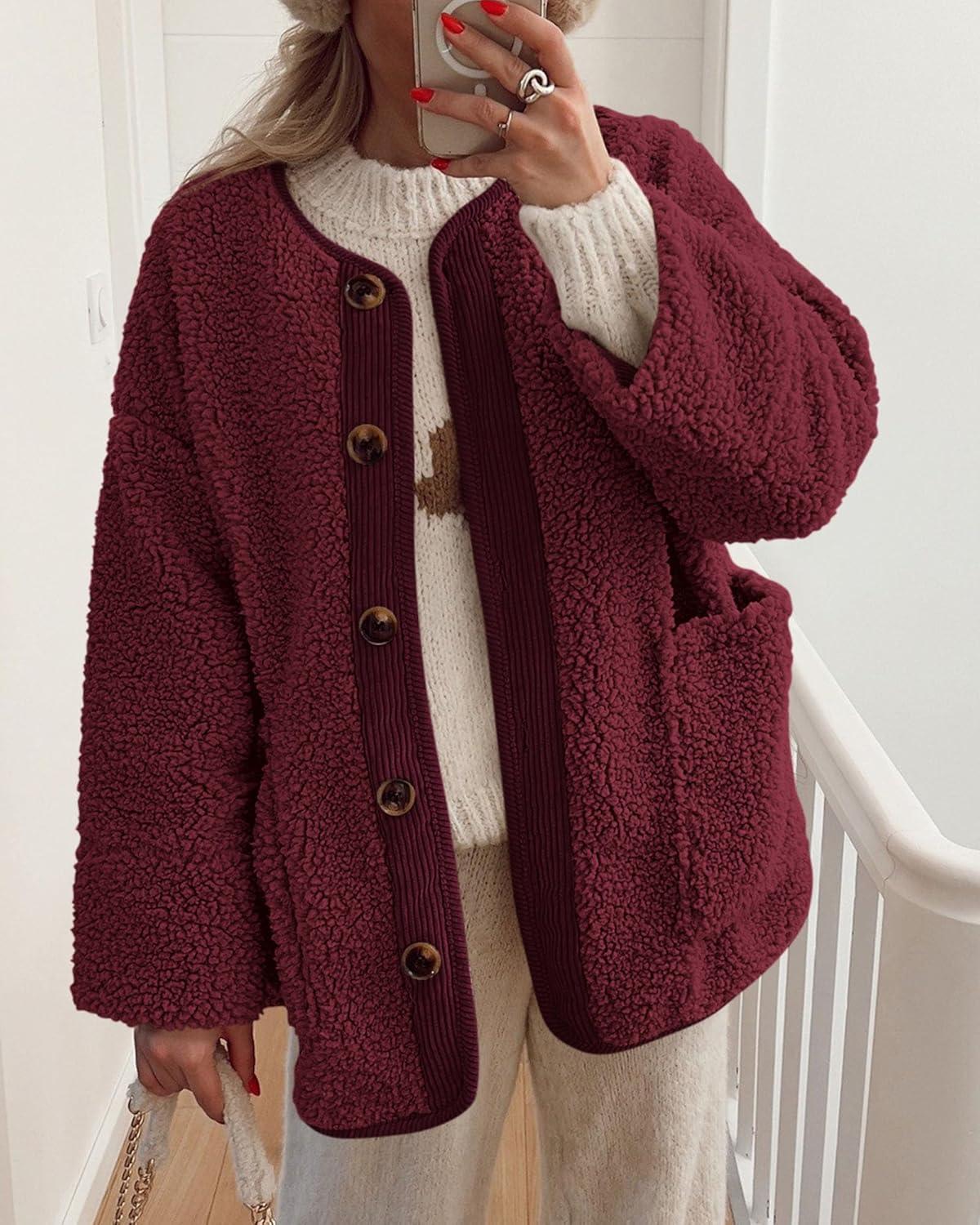 PRETTYGARDEN Women's 2025 Winter Coats Long Sleeve Button up Fuzzy Sherpa Fleece Jackets Outerwear Fall Fashion Clothes(Wine Red)