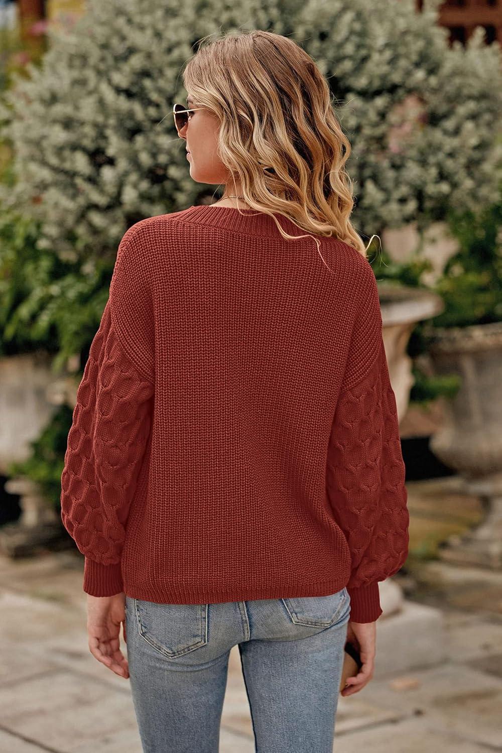 PRETTYGARDEN Women's 2025 Winter Pullover Sweater Casual Long Sleeve Crewneck Loose Chunky Knit Jumper Tops Blouse(Brick Red)