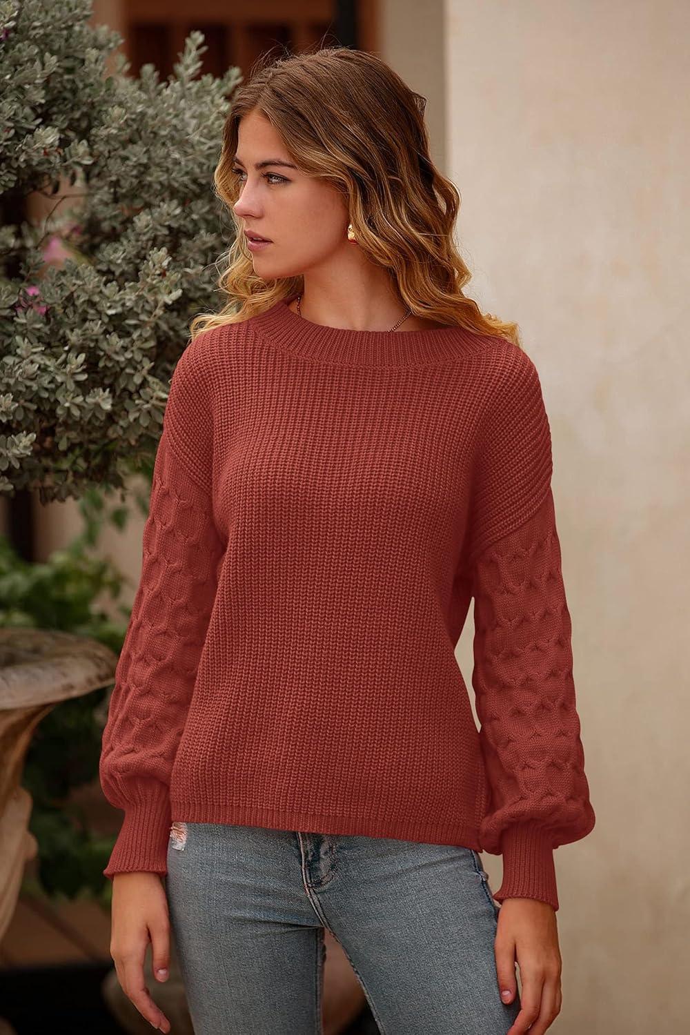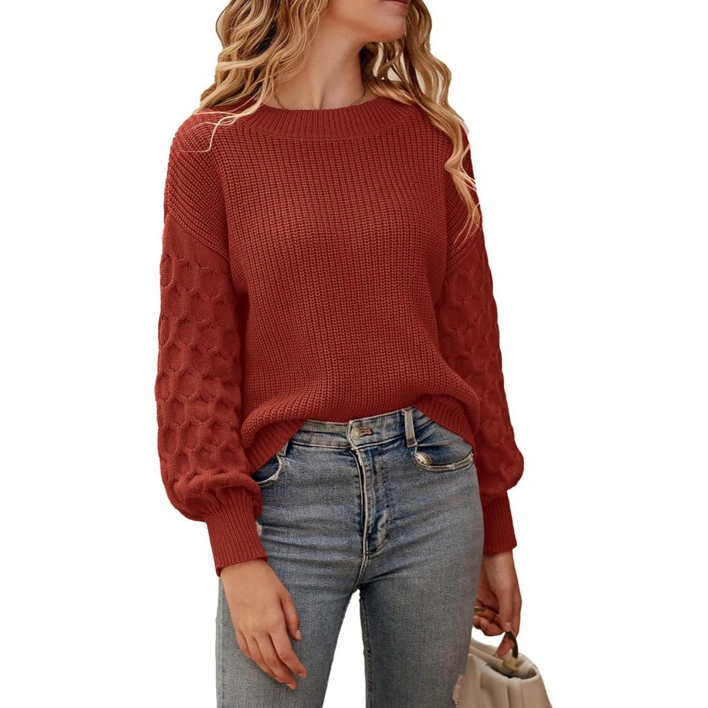 PRETTYGARDEN Women’s 2025 Winter Pullover Sweater Casual Long Sleeve Crewneck Loose Chunky Knit Jumper Tops Blouse(Brick Red)