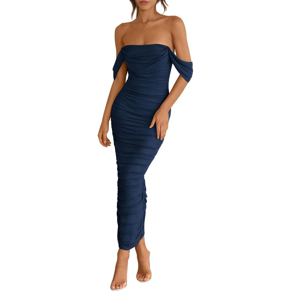 Be the first to review “PRETTYGARDEN Womens 2026 Summer Off The Shoulder Dress Ruched Bodycon Sleeveless Split Cocktail Party Maxi Dresses(Navy)”