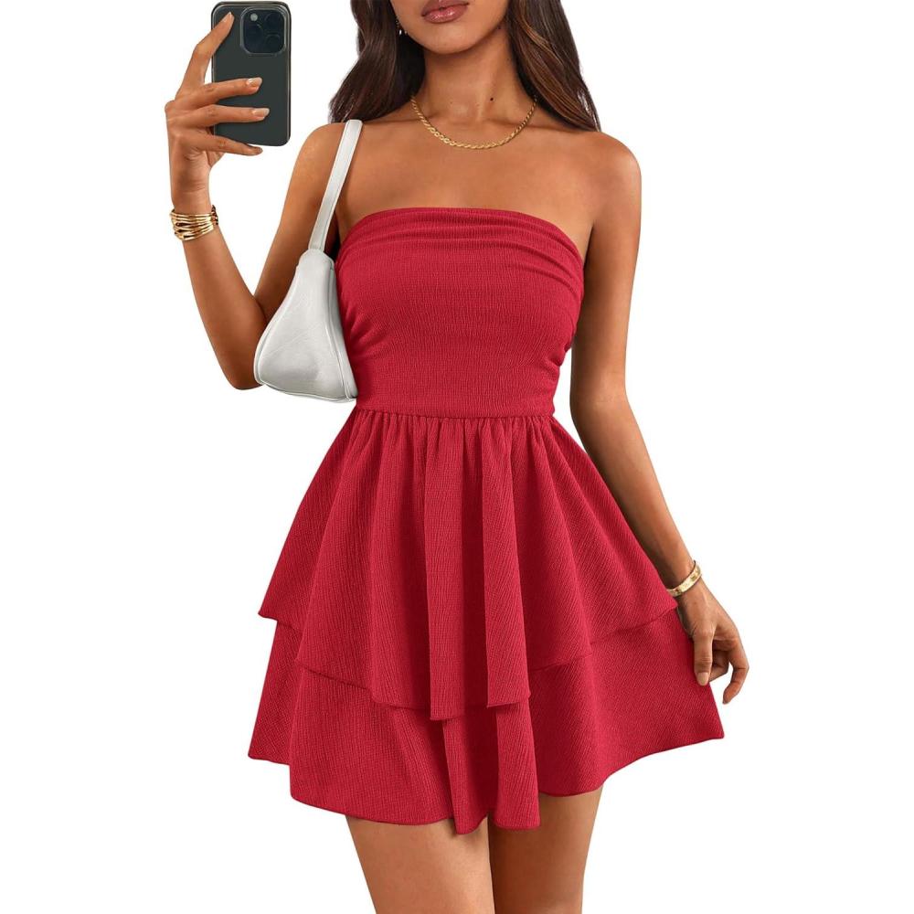 Be the first to review “PRETTYGARDEN Women’s 2026 Summer Strapless Tube Mini Dress Off Shoulder Smocked Ruffle A Line Flowy Short Party Club Dresses(Red)”