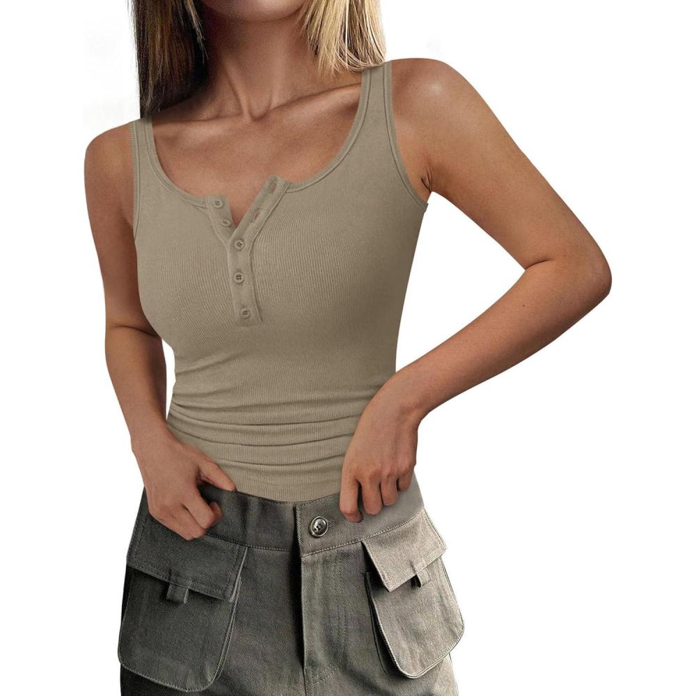 PRETTYGARDEN Womens 2026 Summer Tank Tops Ribbed Knit Slim Fit Sleeveless Henley Shirts Casual Basic Button Up Blouse(Sage Green)