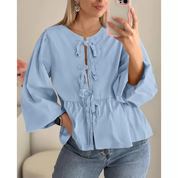 Get up to 50% off on PRETTYGARDEN Women’s Babydoll Peplum Blouse Shirt Puff Long Sleeve Bow Tie Front Trendy Cute Y2K Going Out Tops(Solid Light Blue) styles during our spring sale event.