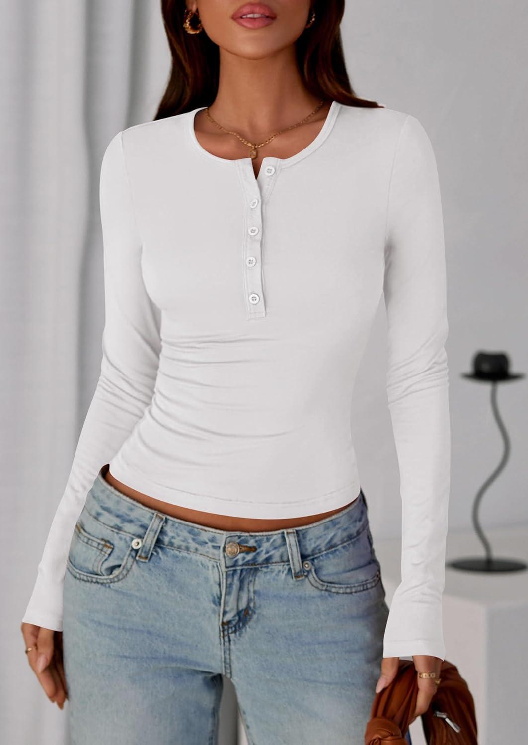 Our clearance event features the best deals on PRETTYGARDEN Womens Casual Long Sleeve Tops 2025 Fall Crew Neck Fitted Henley Shirts Basic Tee Blouse Knit Going Out Outfits(White) and accessories. Shop now!