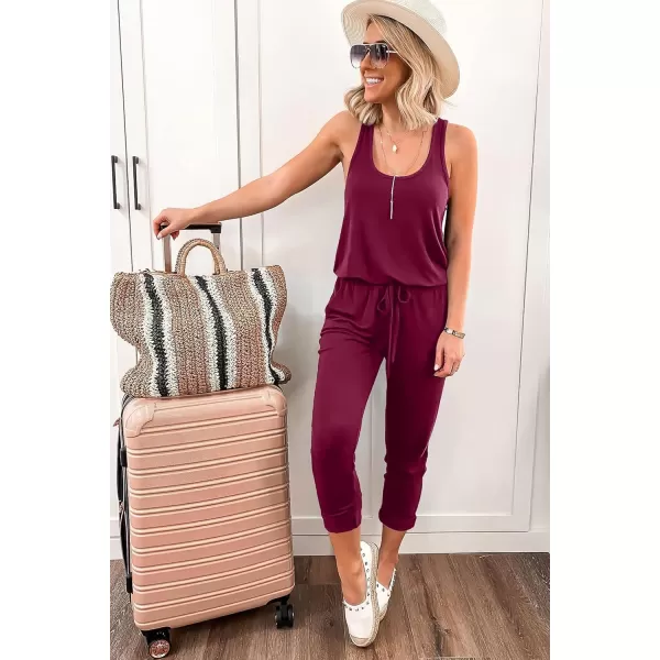 imagePRETTYGARDEN Womens Casual Tank Jumpsuits Sleeveless Drawstring Elastic Waist Loose Summer RomperPurple Red