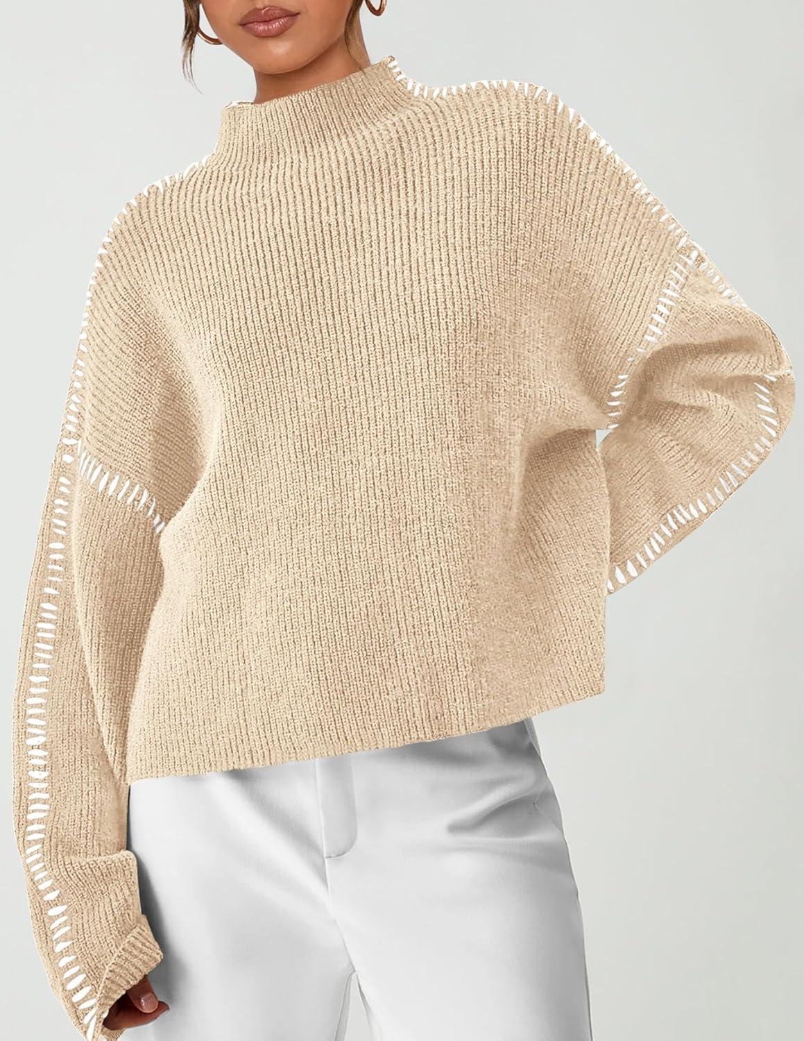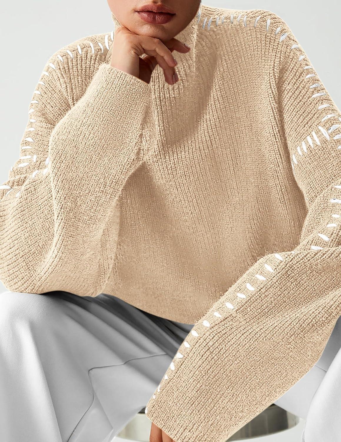 PRETTYGARDEN Women’s Chunky Knit Sweaters 2025 Fall Long Sleeve Mock Neck Oversized Pullover Tops Winter Fashion Clothes(Apricot)