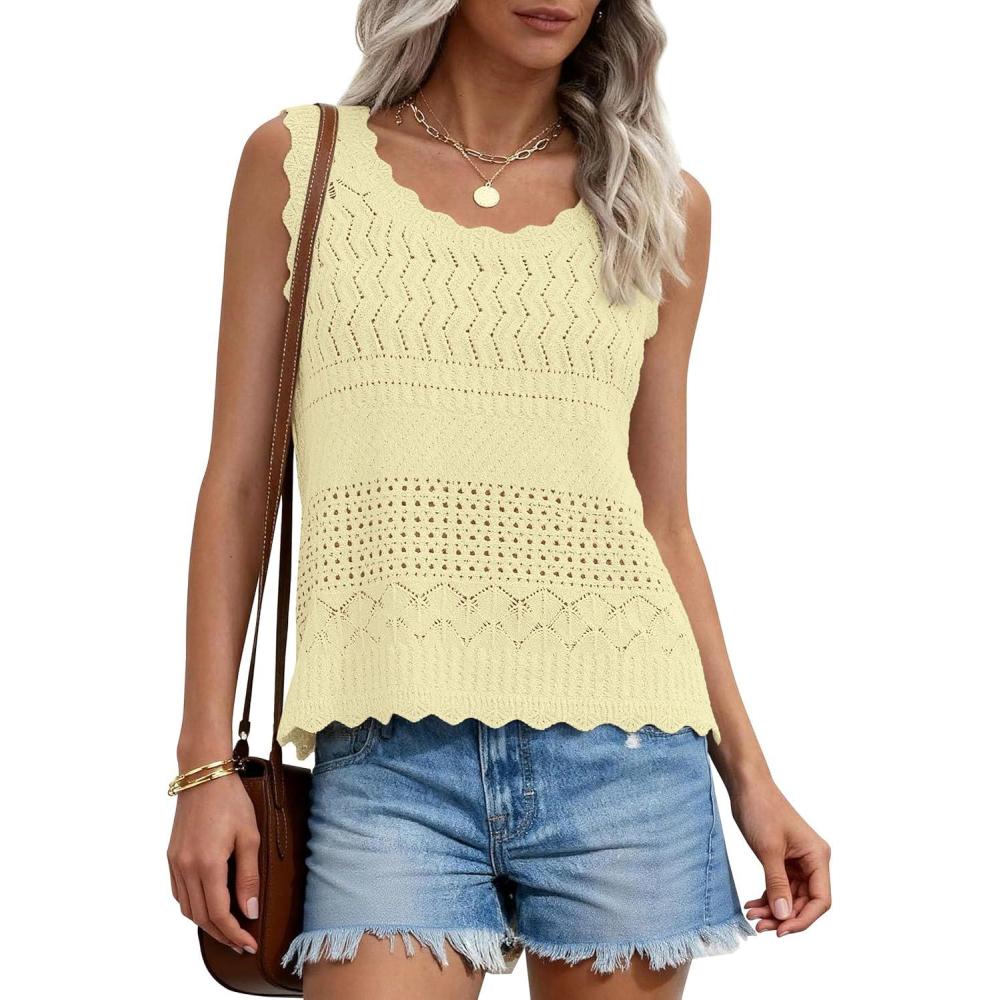 PRETTYGARDEN Womens Crochet Tank Tops 2026 Summer Spring Boho Sleeveless Cute Knit Sweater Vest Trendy Beach Vacation Clothes(Yellow)