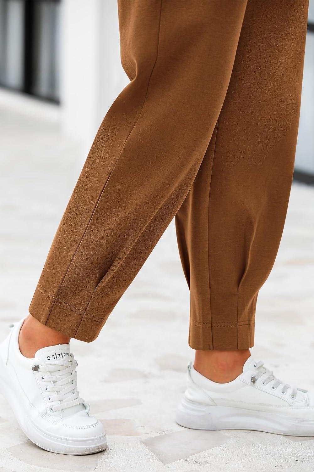imagePRETTYGARDEN Womens Dress Pants Business Casual 2025 Trendy High Waisted Ankle Length Dressy Trousers Slacks Work ClothesBrown