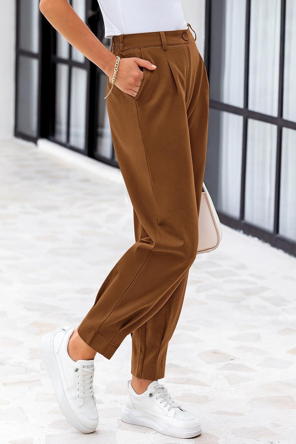 PRETTYGARDEN Womens Dress Pants Business Casual 2025 Trendy High Waisted Ankle Length Dressy Trousers Slacks Work Clothes(Brown)