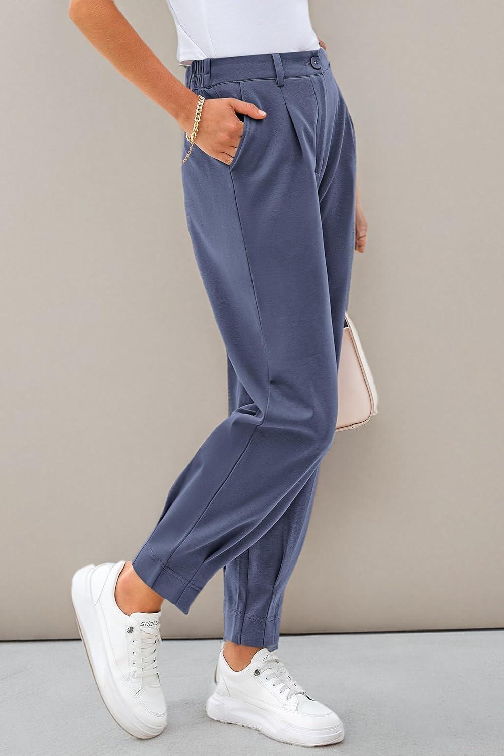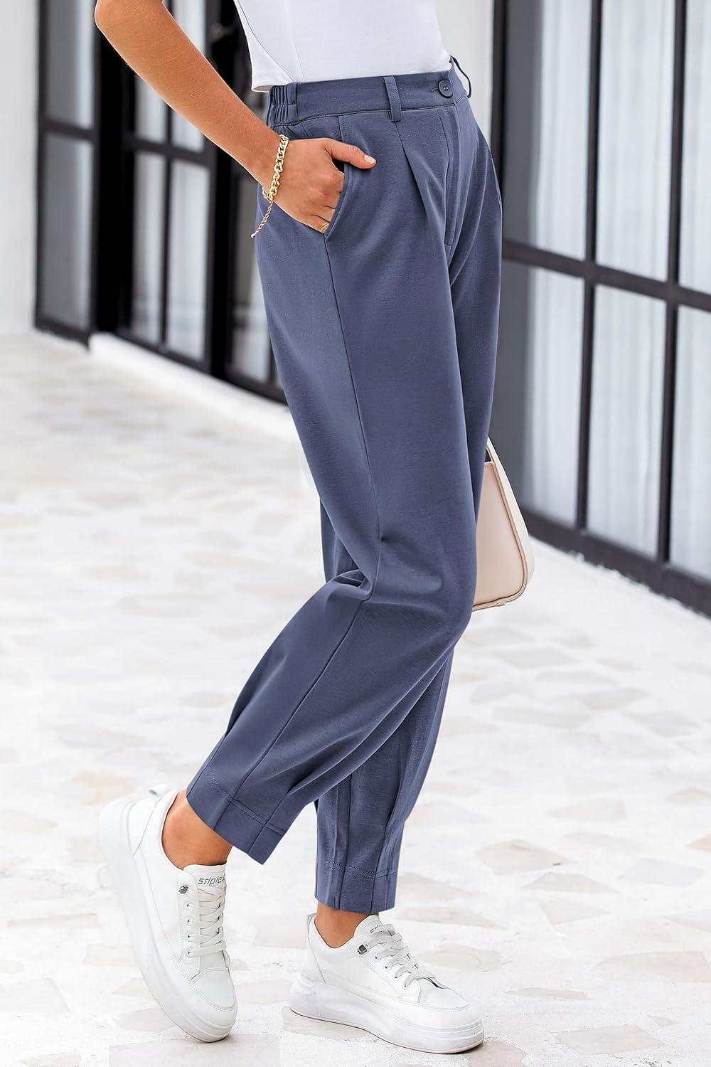 PRETTYGARDEN Womens Dress Pants Business Casual 2025 Trendy High Waisted Ankle Length Dressy Trousers Slacks Work Clothes(Grey Blue)