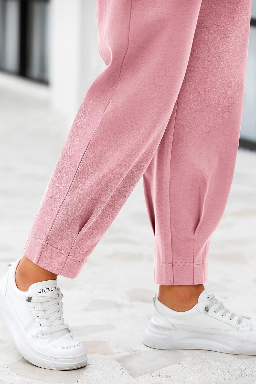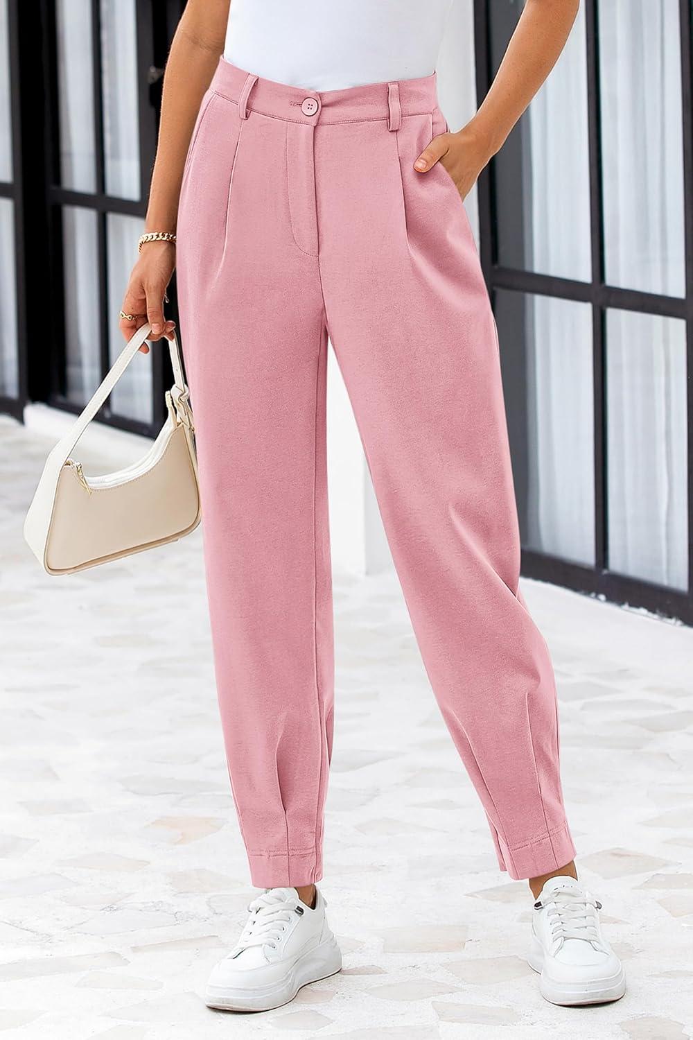 PRETTYGARDEN Womens Dress Pants Business Casual 2025 Trendy High Waisted Ankle Length Dressy Trousers Slacks Work Clothes(Pink)
