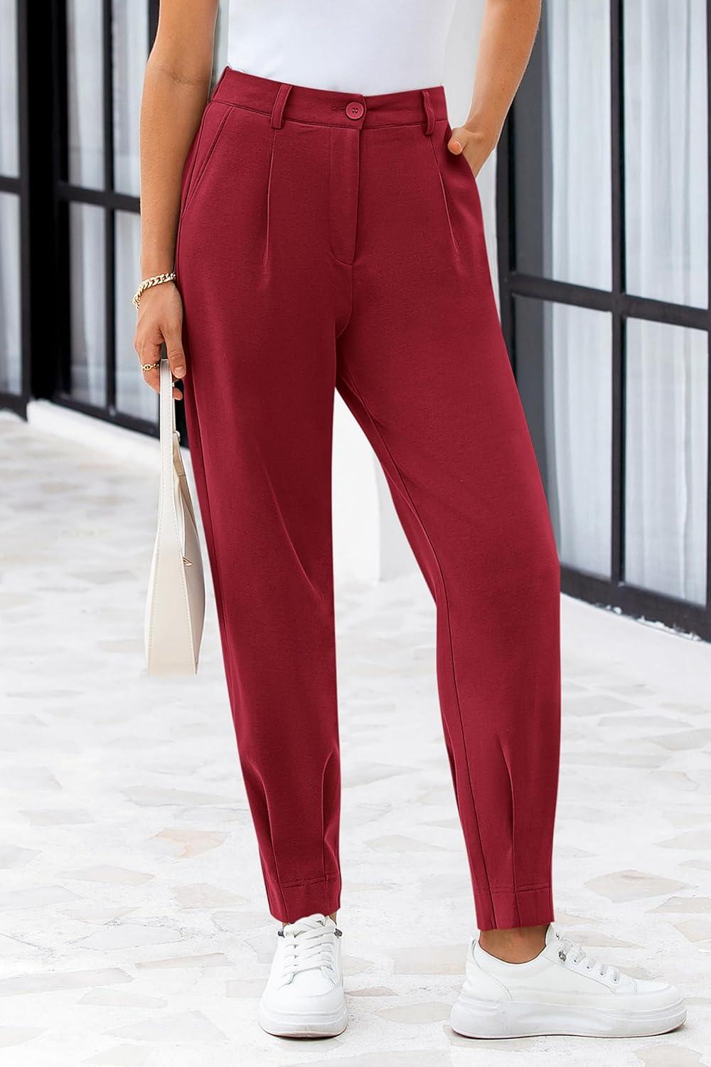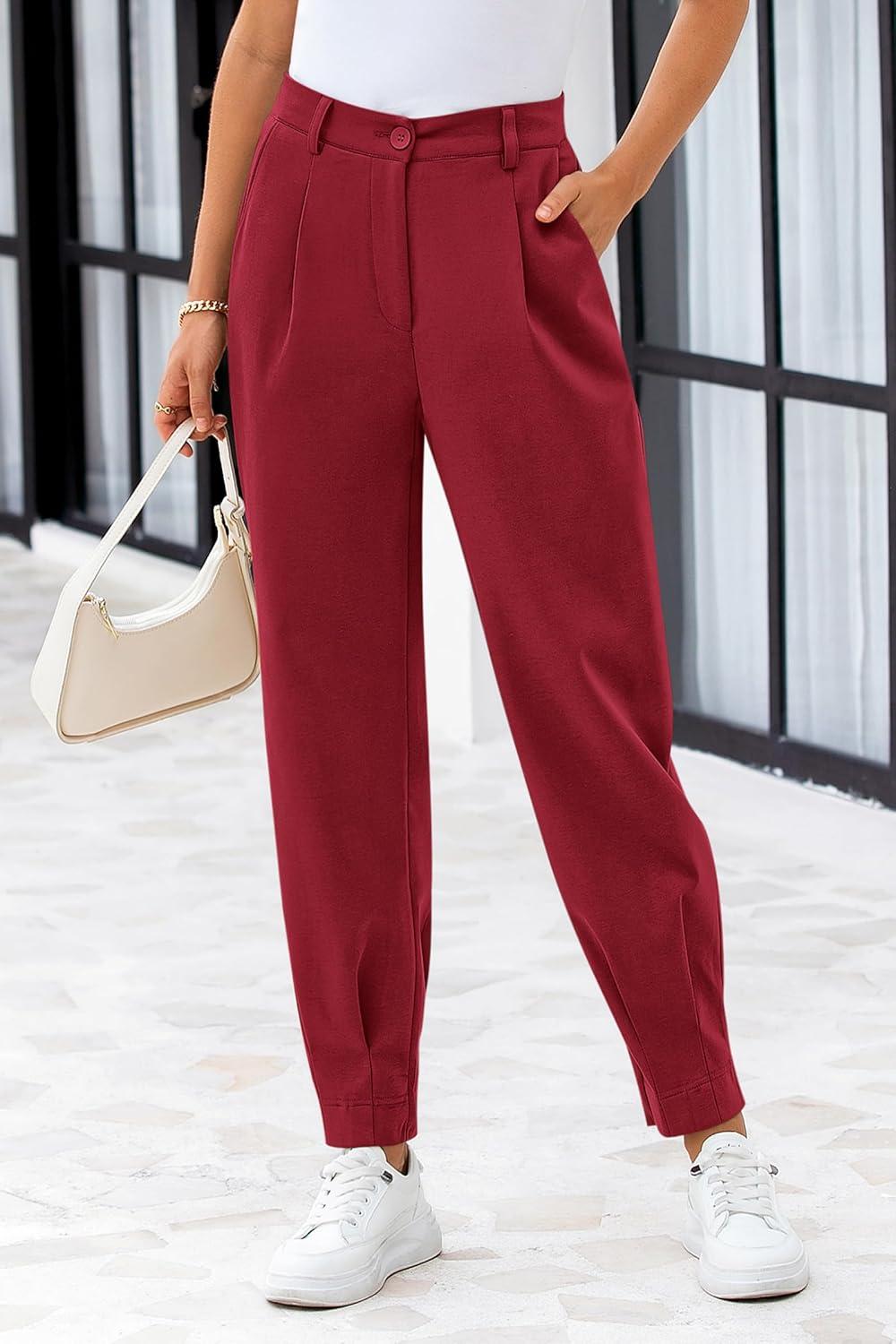 PRETTYGARDEN Womens Dress Pants Business Casual 2025 Trendy High Waisted Ankle Length Dressy Trousers Slacks Work Clothes(Wine Red)