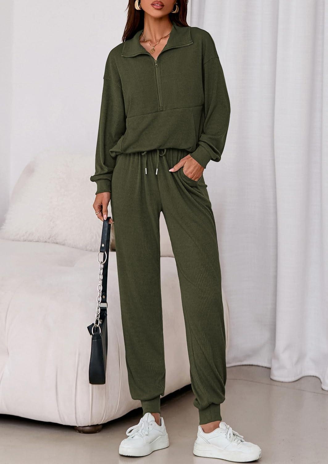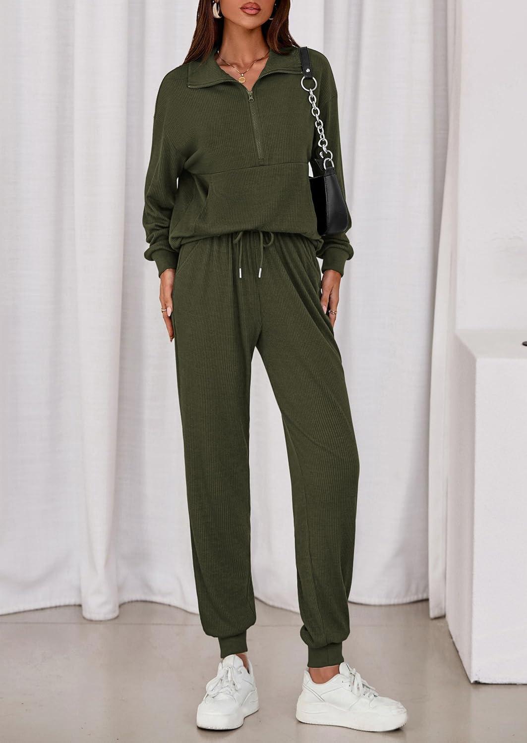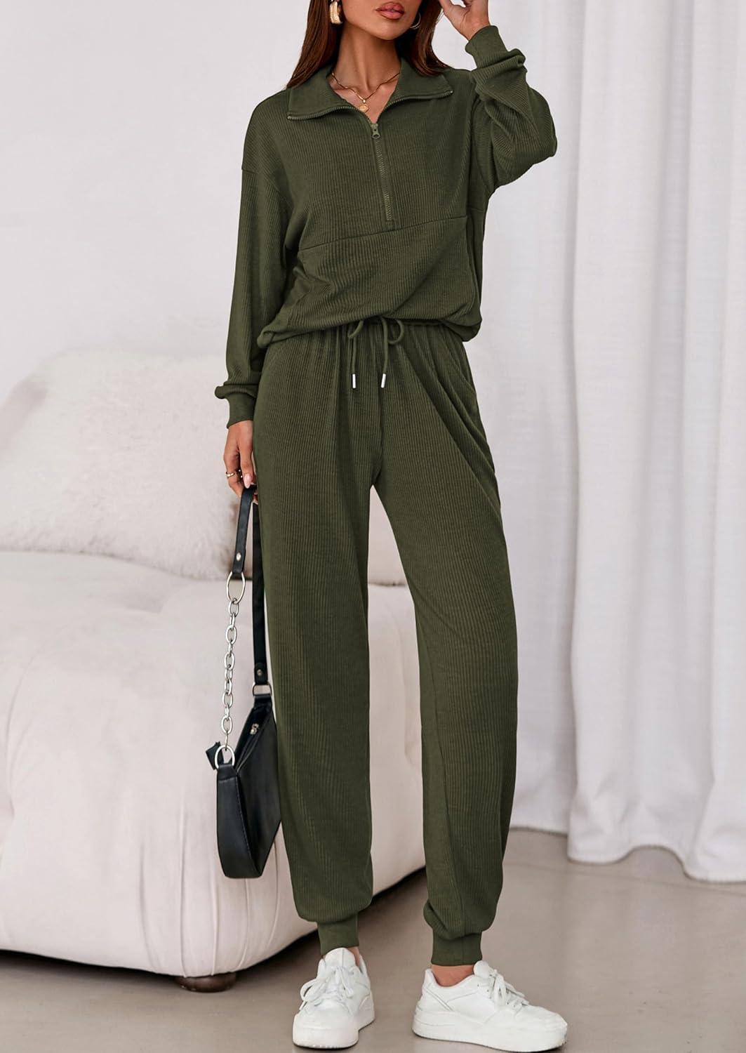 PRETTYGARDEN Women’s Fall 2 Piece Lounge Sets Zip Up Sweatshirt Jogger Pants Sweat Track Suits Travel Outfit Winter Clothing(Army Green)