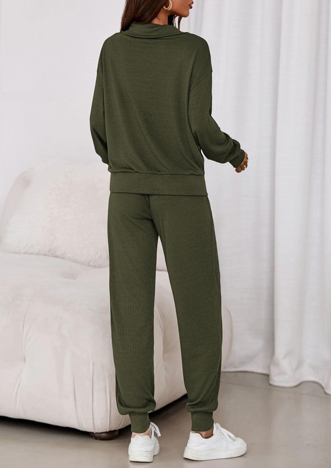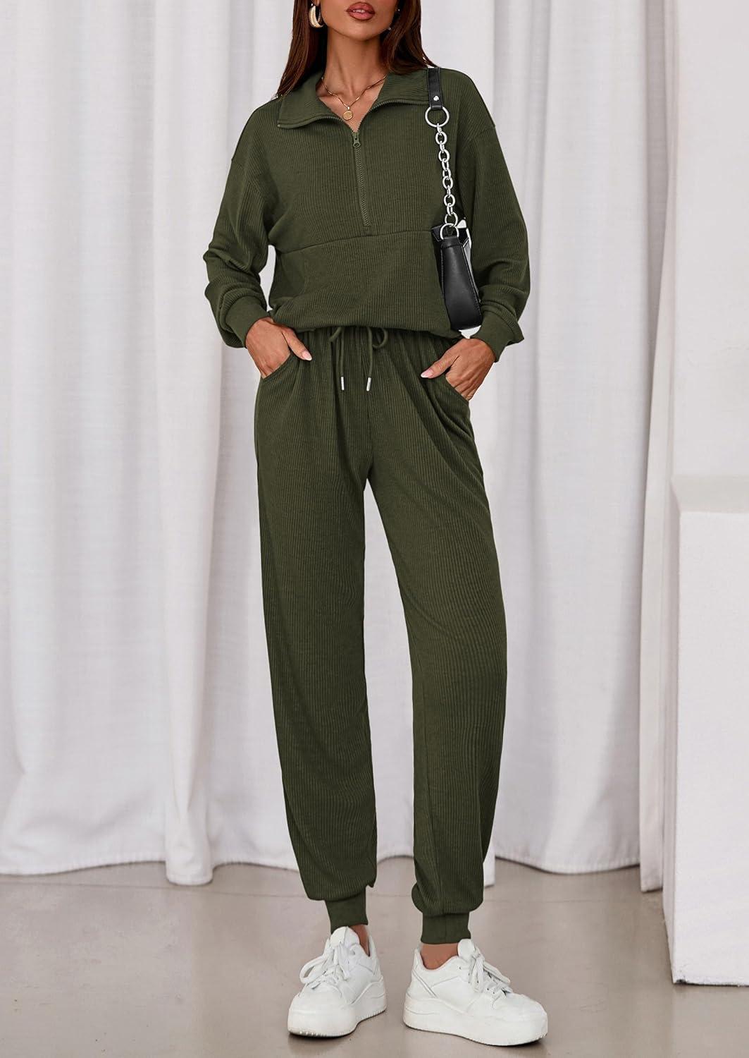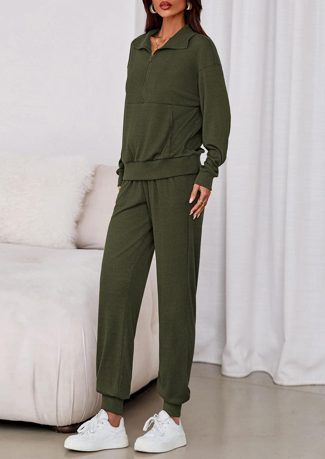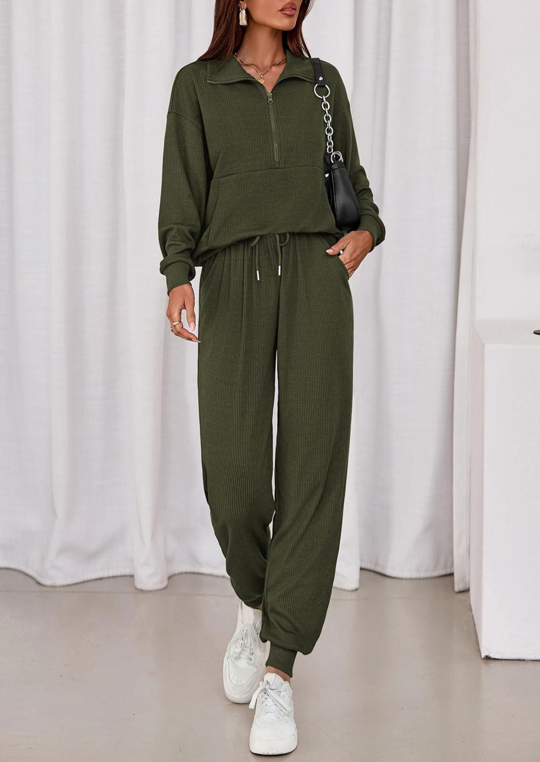 PRETTYGARDEN Women’s Fall 2 Piece Lounge Sets Zip Up Sweatshirt Jogger Pants Sweat Track Suits Travel Outfit Winter Clothing(Army Green)