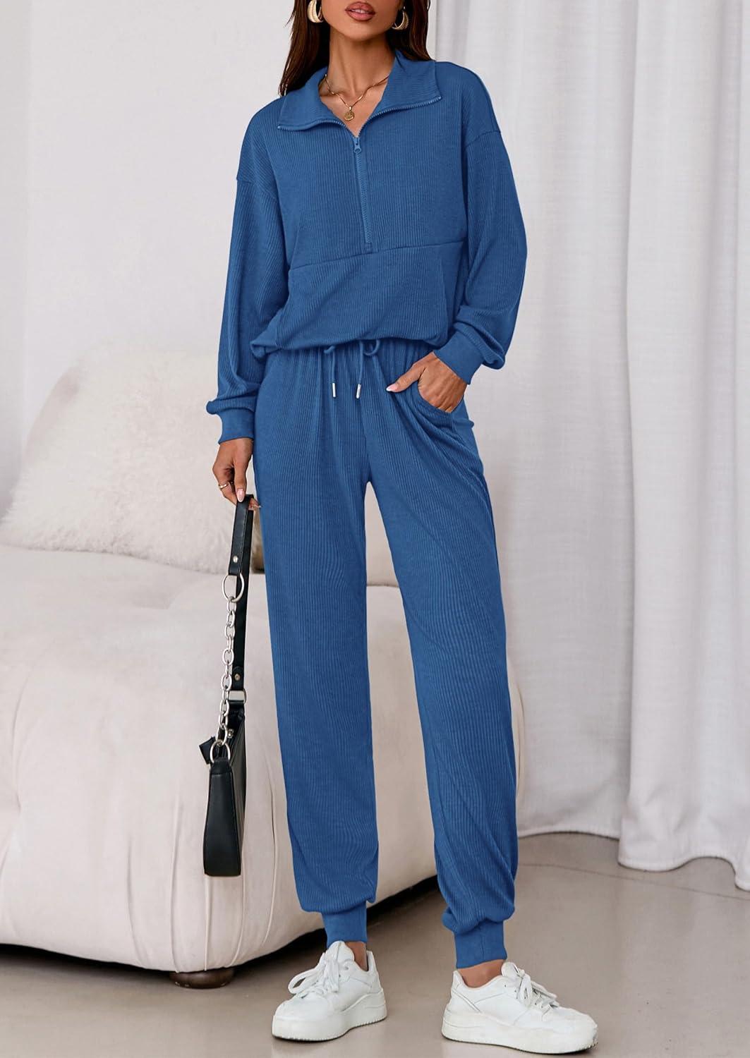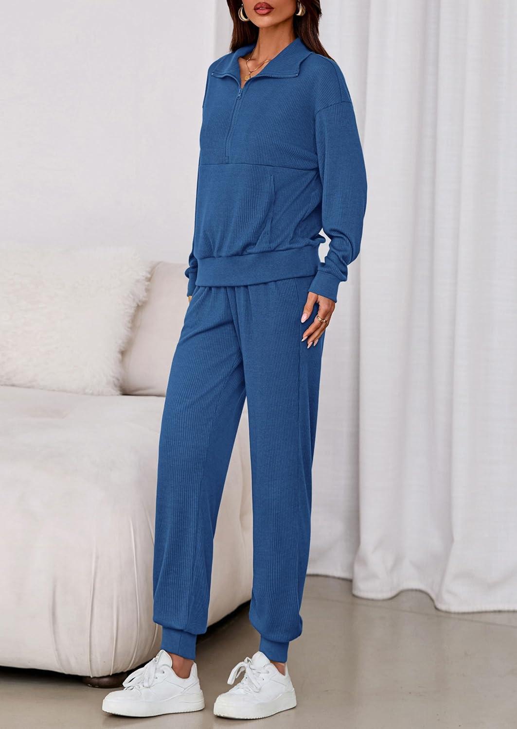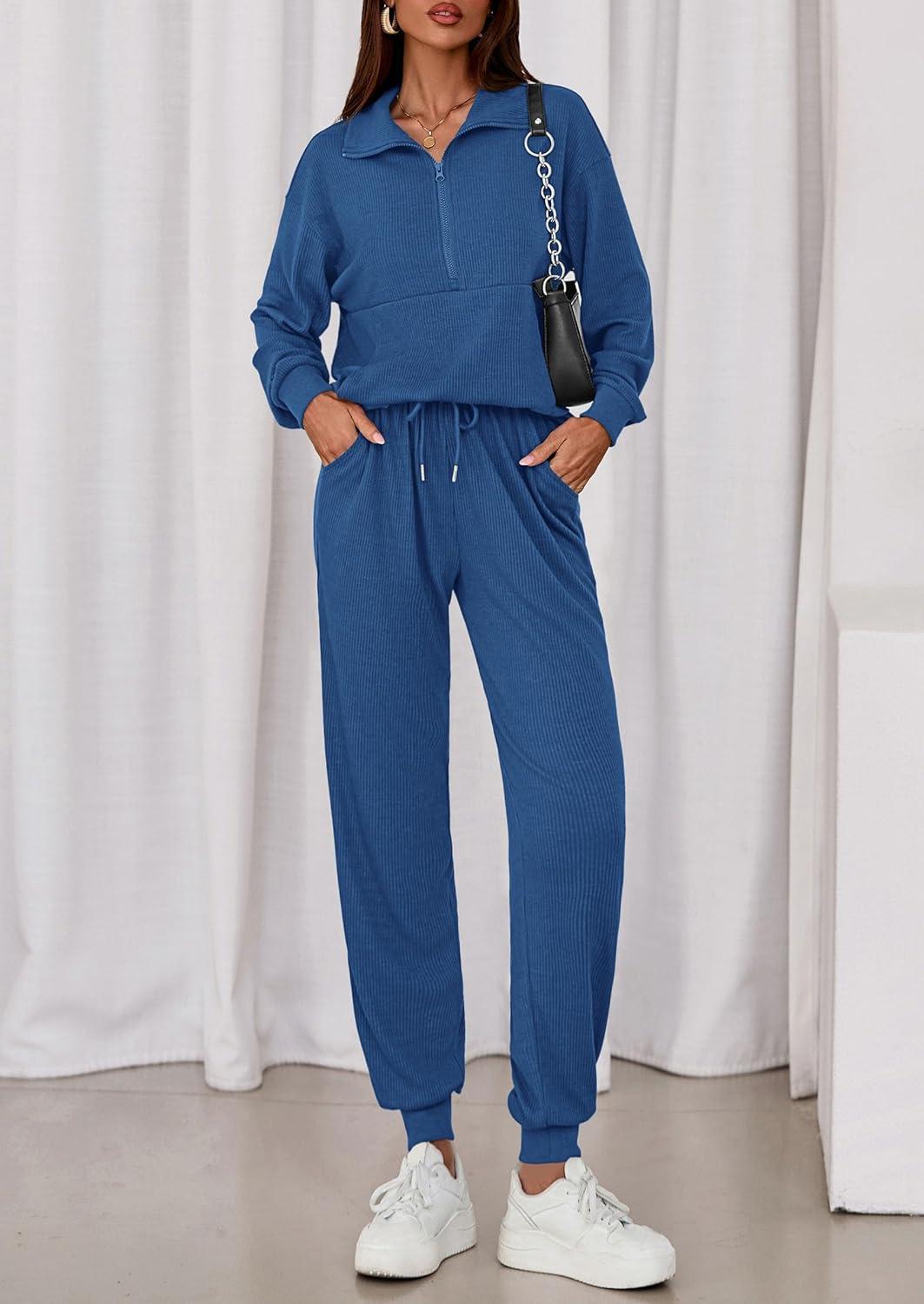 PRETTYGARDEN Women’s Fall 2 Piece Lounge Sets Zip Up Sweatshirt Jogger Pants Sweat Track Suits Travel Outfit Winter Clothing(Dark Blue)
