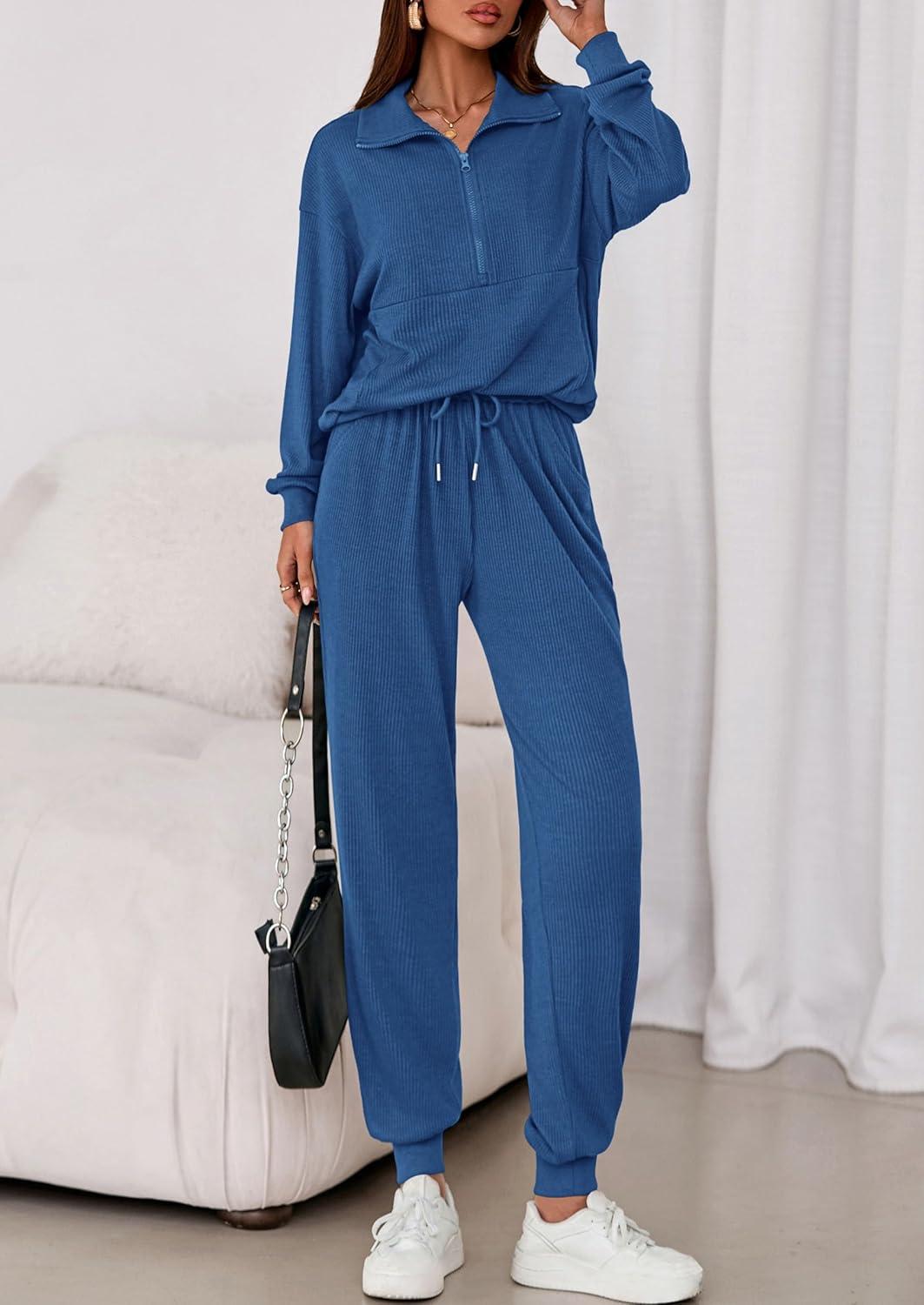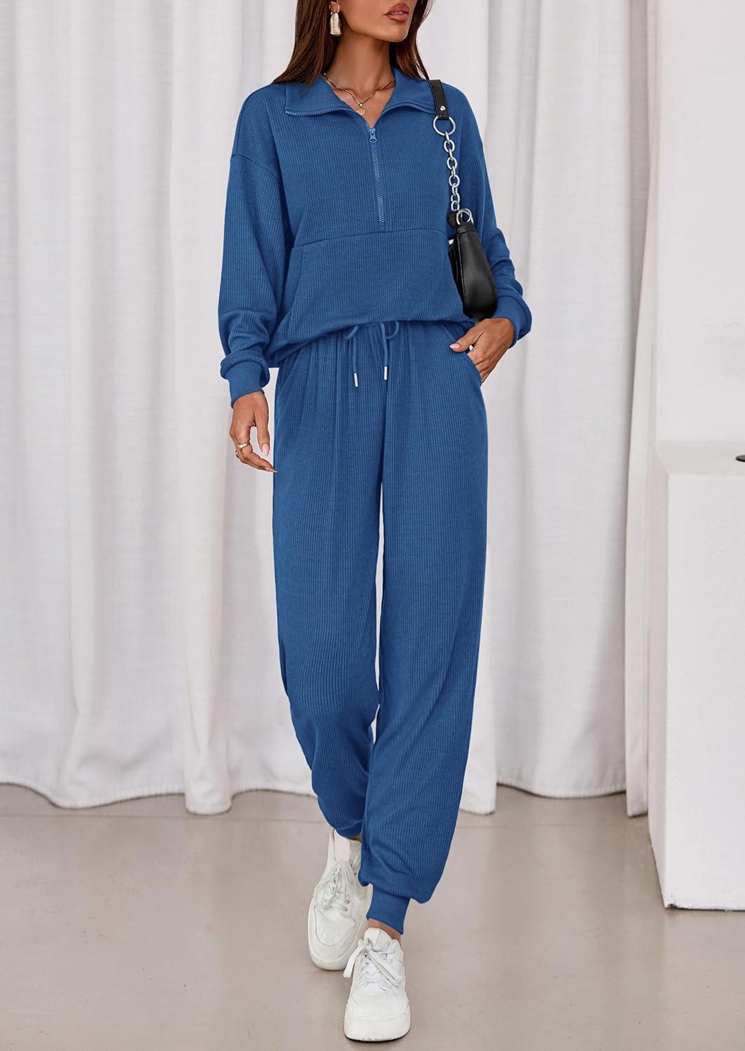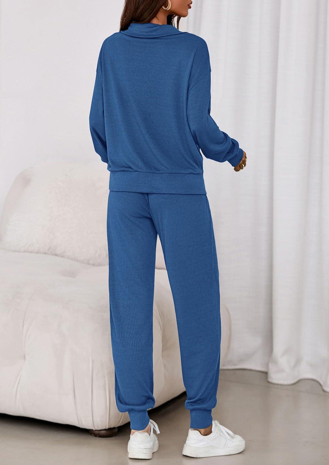 PRETTYGARDEN Women’s Fall 2 Piece Lounge Sets Zip Up Sweatshirt Jogger Pants Sweat Track Suits Travel Outfit Winter Clothing(Dark Blue)