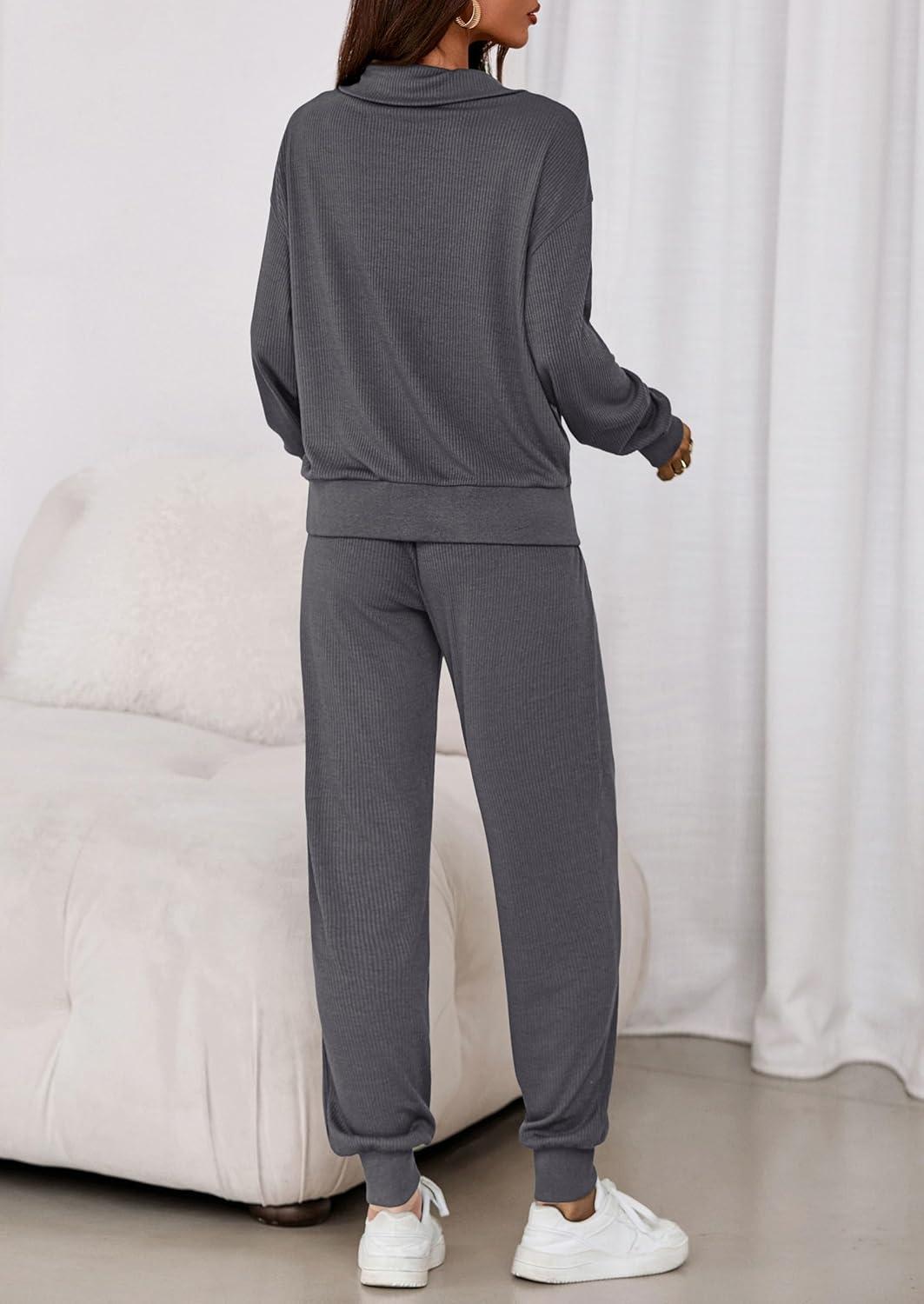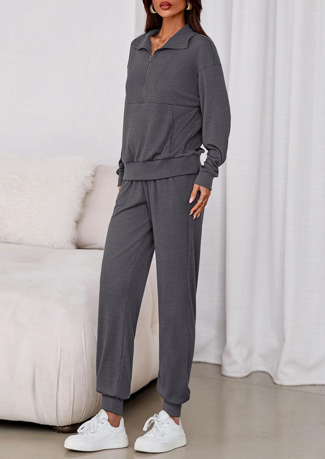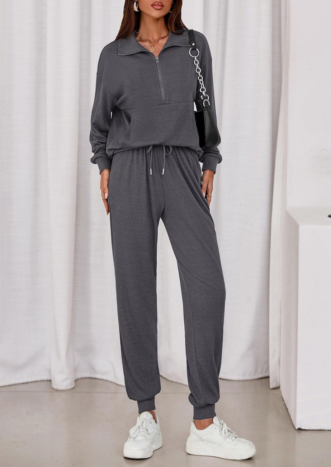 PRETTYGARDEN Women’s Fall 2 Piece Lounge Sets Zip Up Sweatshirt Jogger Pants Sweat Track Suits Travel Outfit Winter Clothing(Dark Grey)