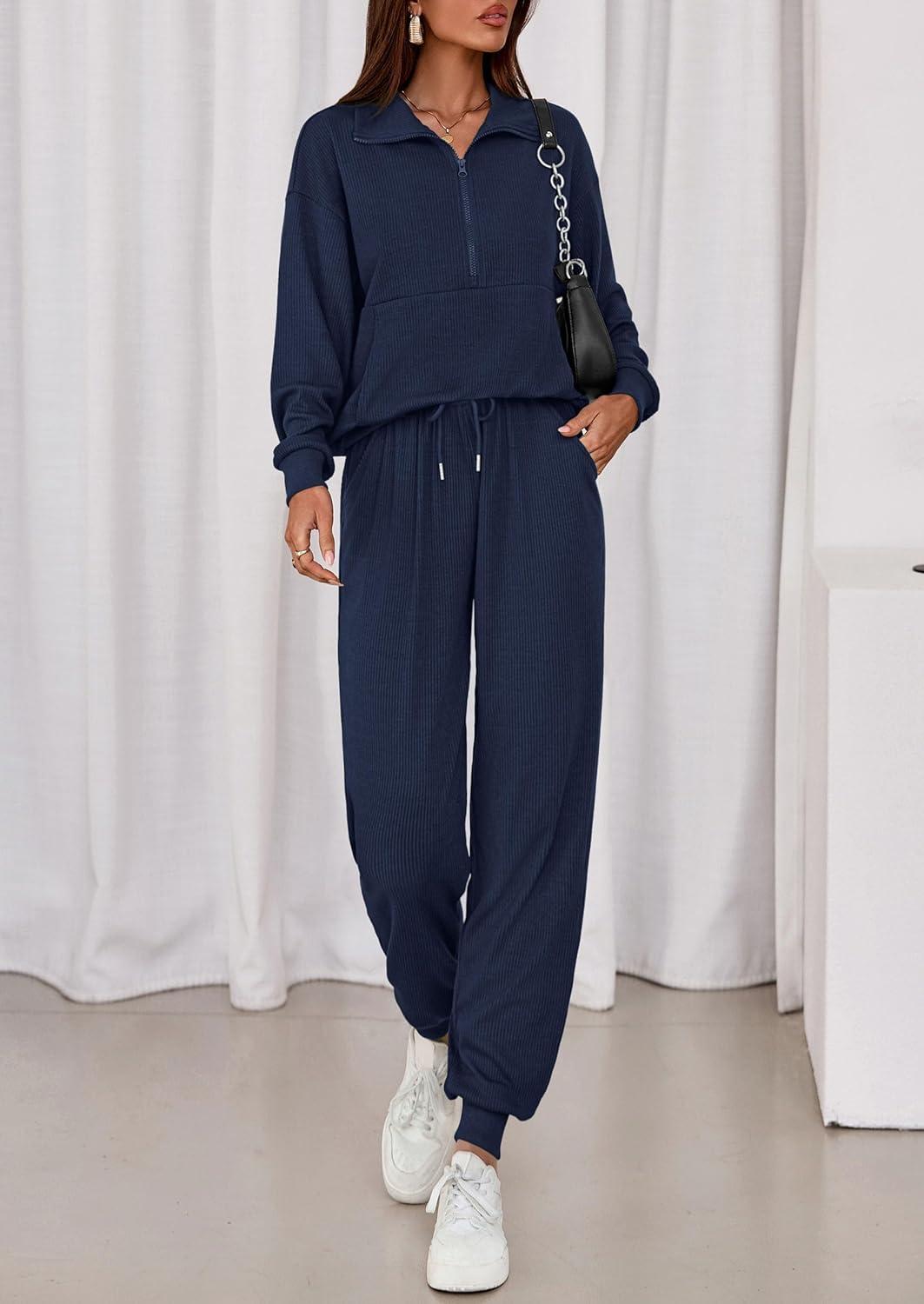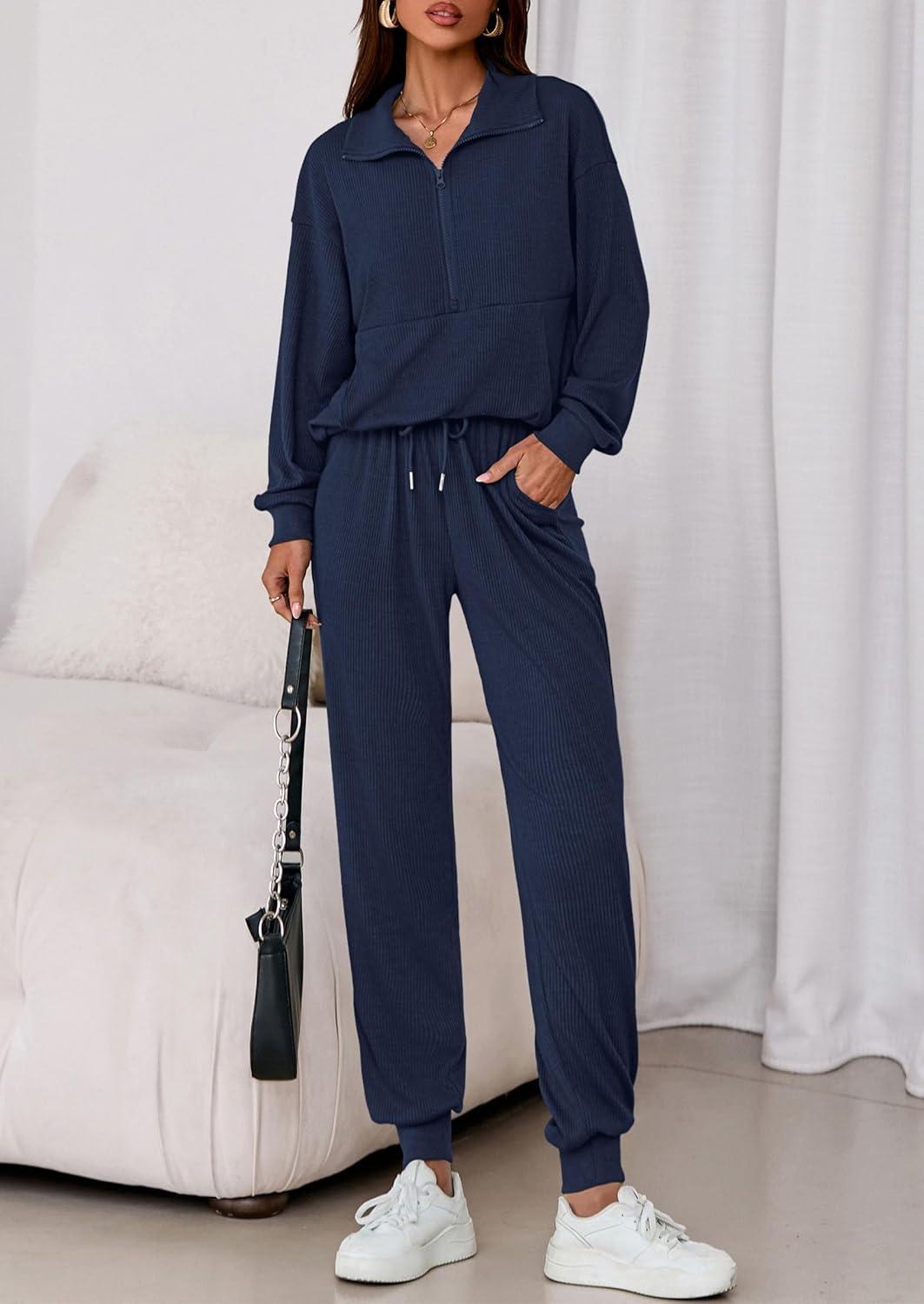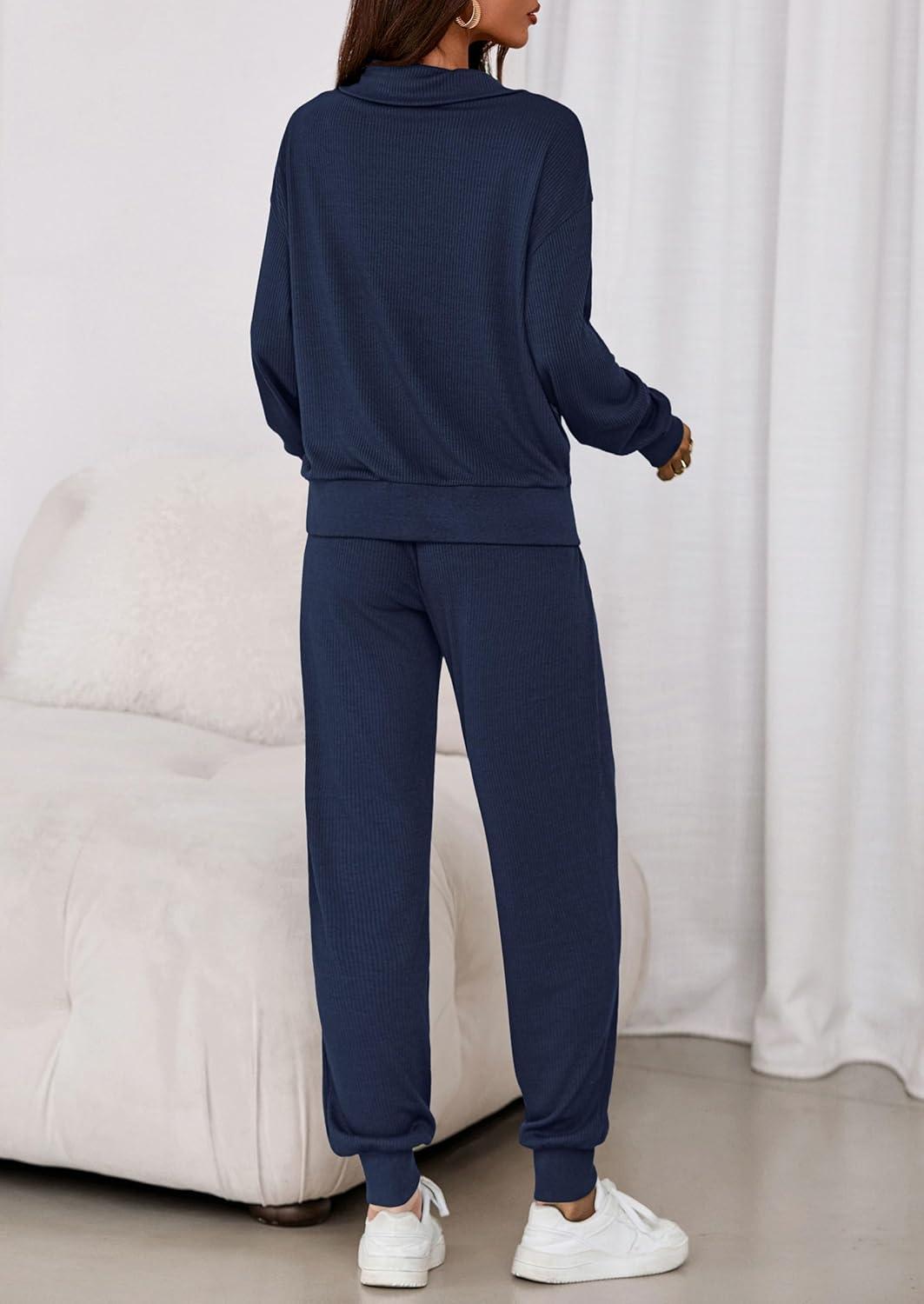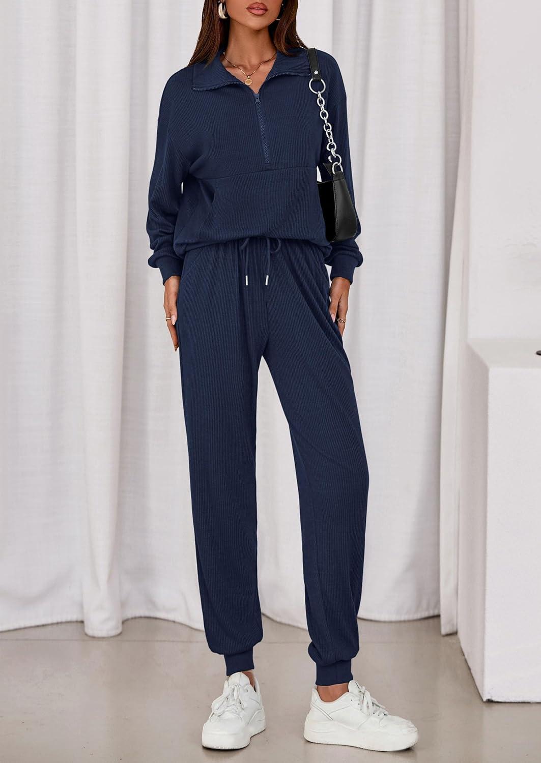 PRETTYGARDEN Women’s Fall 2 Piece Lounge Sets Zip Up Sweatshirt Jogger Pants Sweat Track Suits Travel Outfit Winter Clothing(Navy)