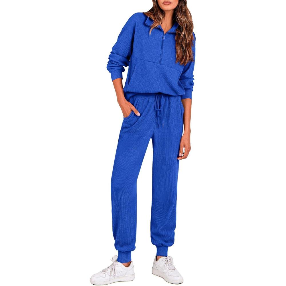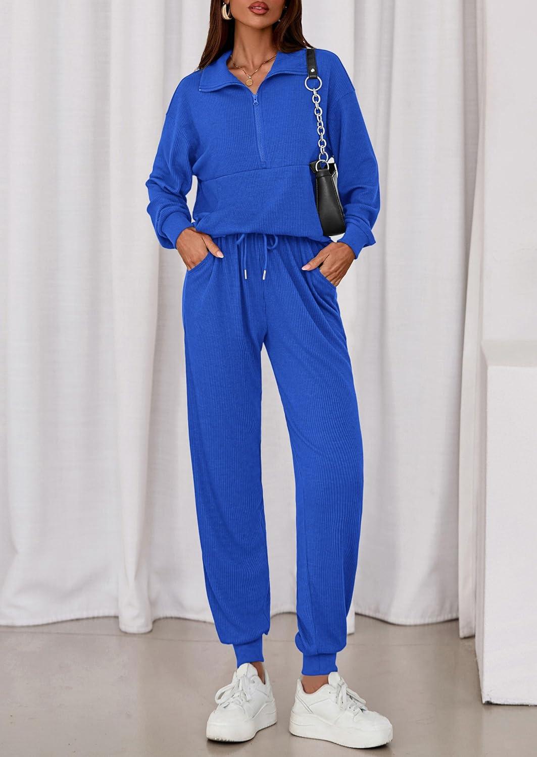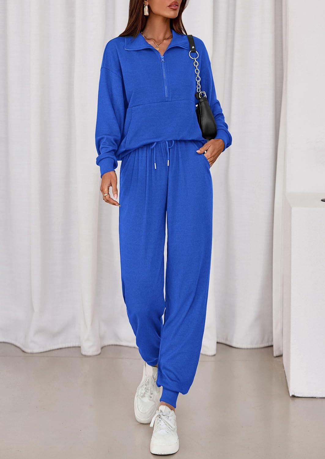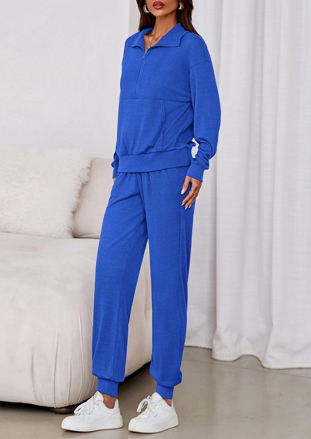 PRETTYGARDEN Women’s Fall 2 Piece Lounge Sets Zip Up Sweatshirt Jogger Pants Sweat Track Suits Travel Outfit Winter Clothing(Royal Blue)