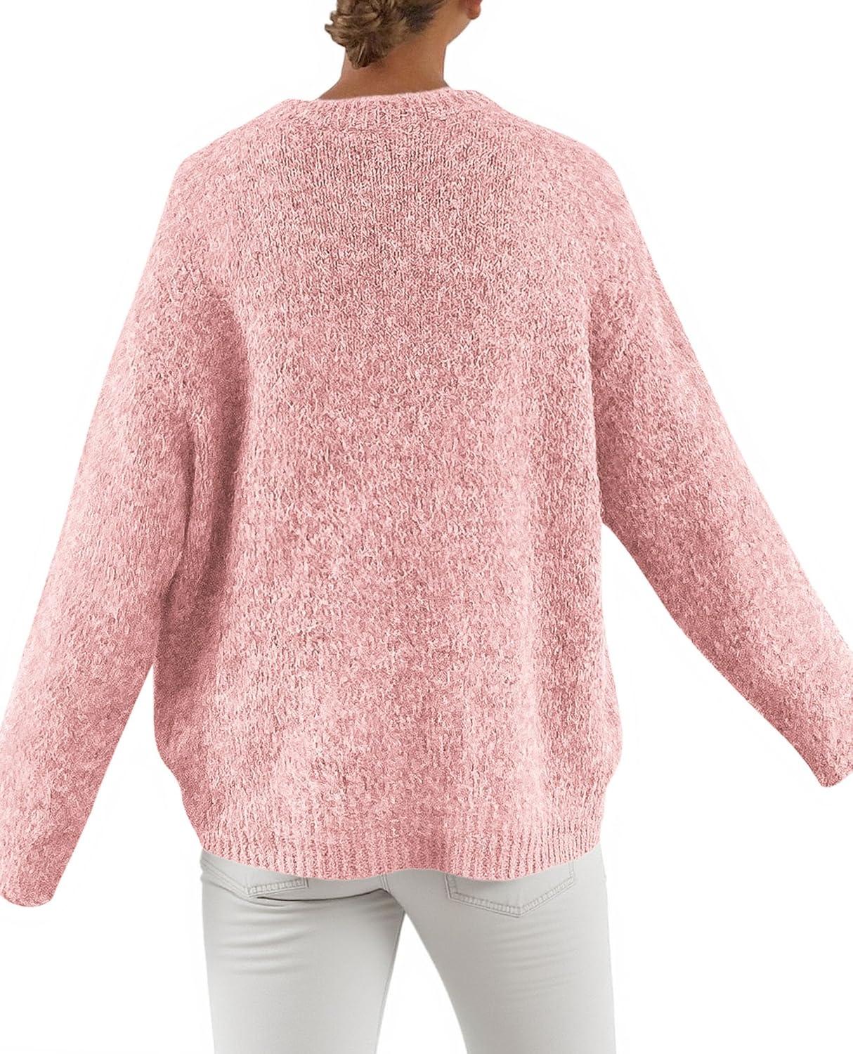 PRETTYGARDEN Womens Fall Long Sleeve Sweater Crew Neck Fuzzy Loose Fit Chunky Knit Oversized Pullover Sweaters Going Out Tops(Pink)