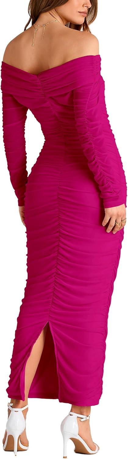 Be the first to review “PRETTYGARDEN Women’s Fall Off The Shoulder Maxi Dress Spring Long Sleeve Ruched Fitted Bodycon Club Dresses with Slit(Rose Red)”