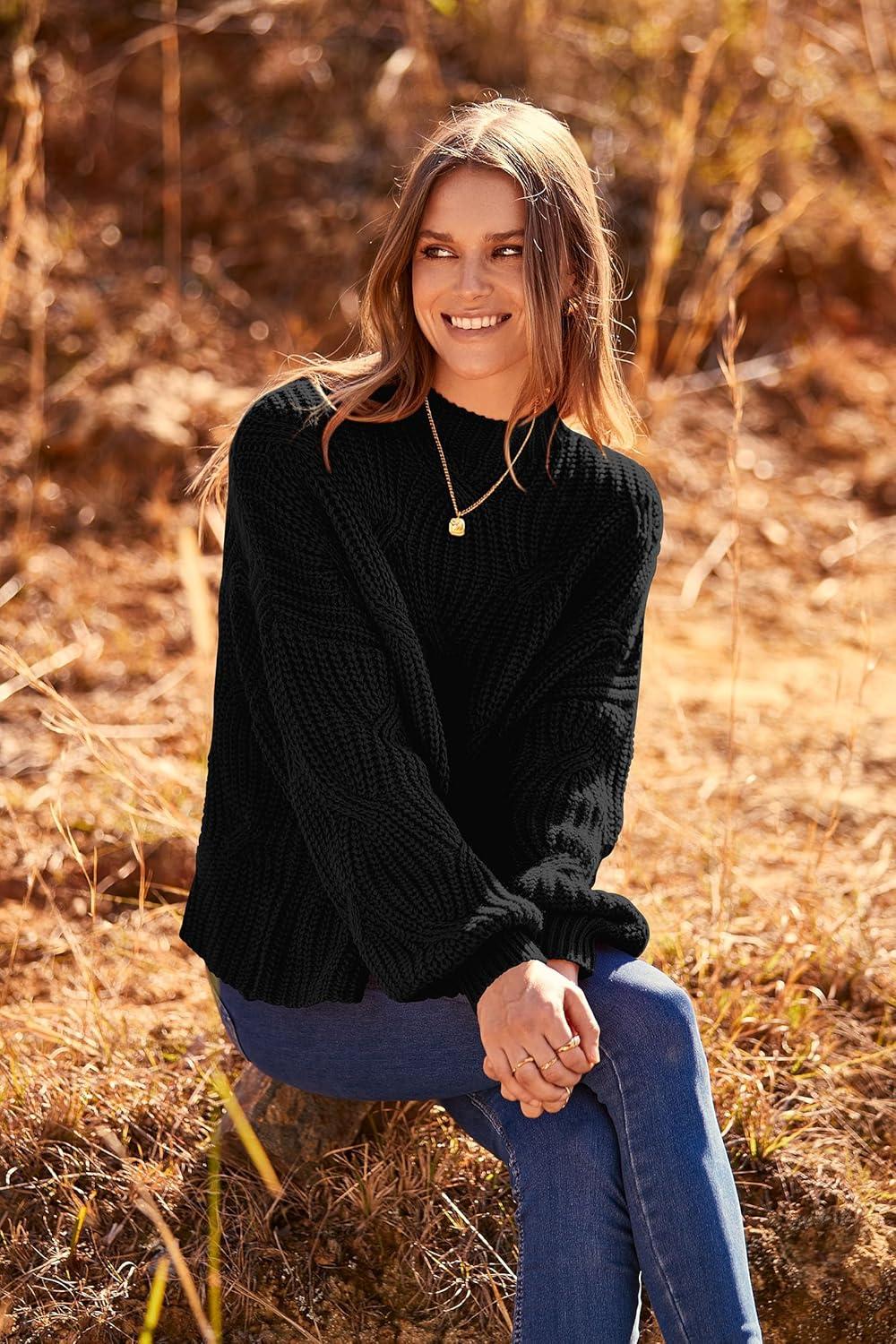 PRETTYGARDEN Women's Fall Oversized Pullover Sweaters Casual Crewneck Long Sleeve Chunky Cable Knit Tops Winter Clothing(Black)