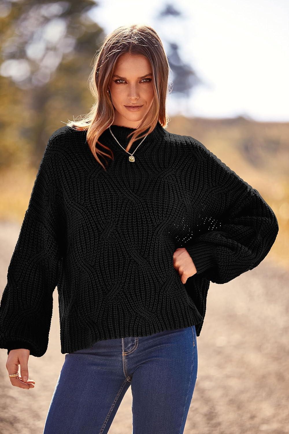 PRETTYGARDEN Women’s Fall Oversized Pullover Sweaters Casual Crewneck Long Sleeve Chunky Cable Knit Tops Winter Clothing(Black)