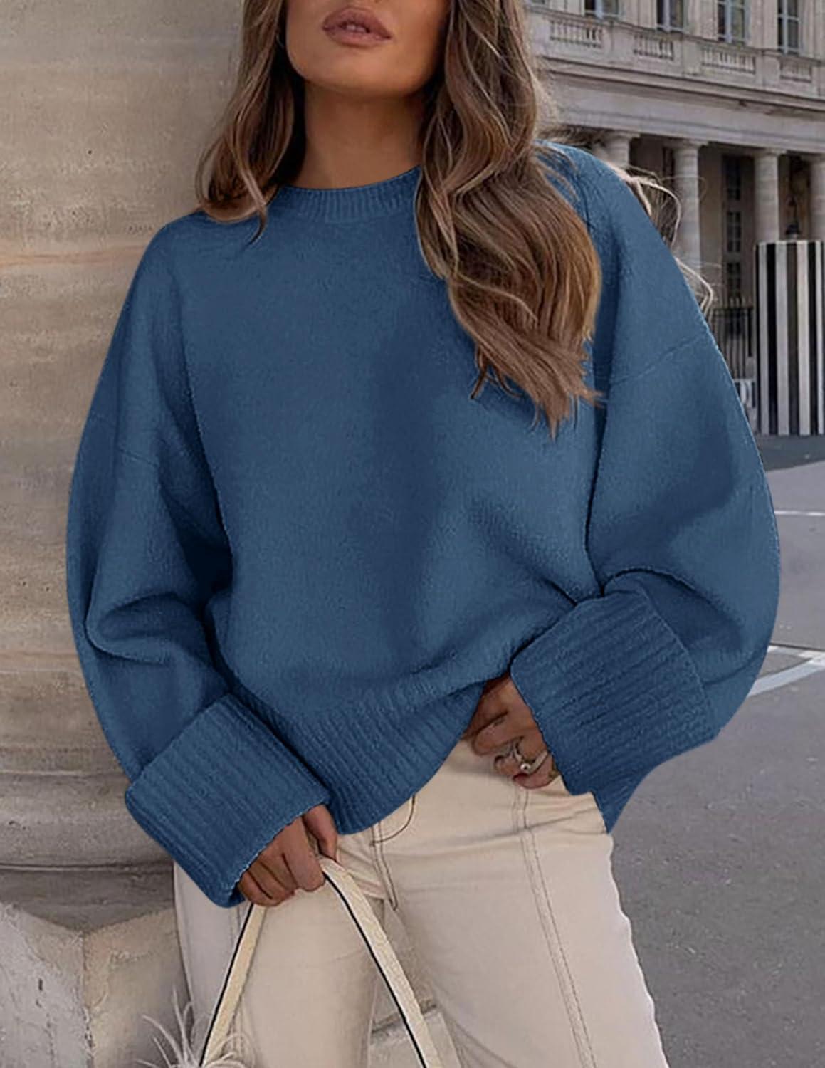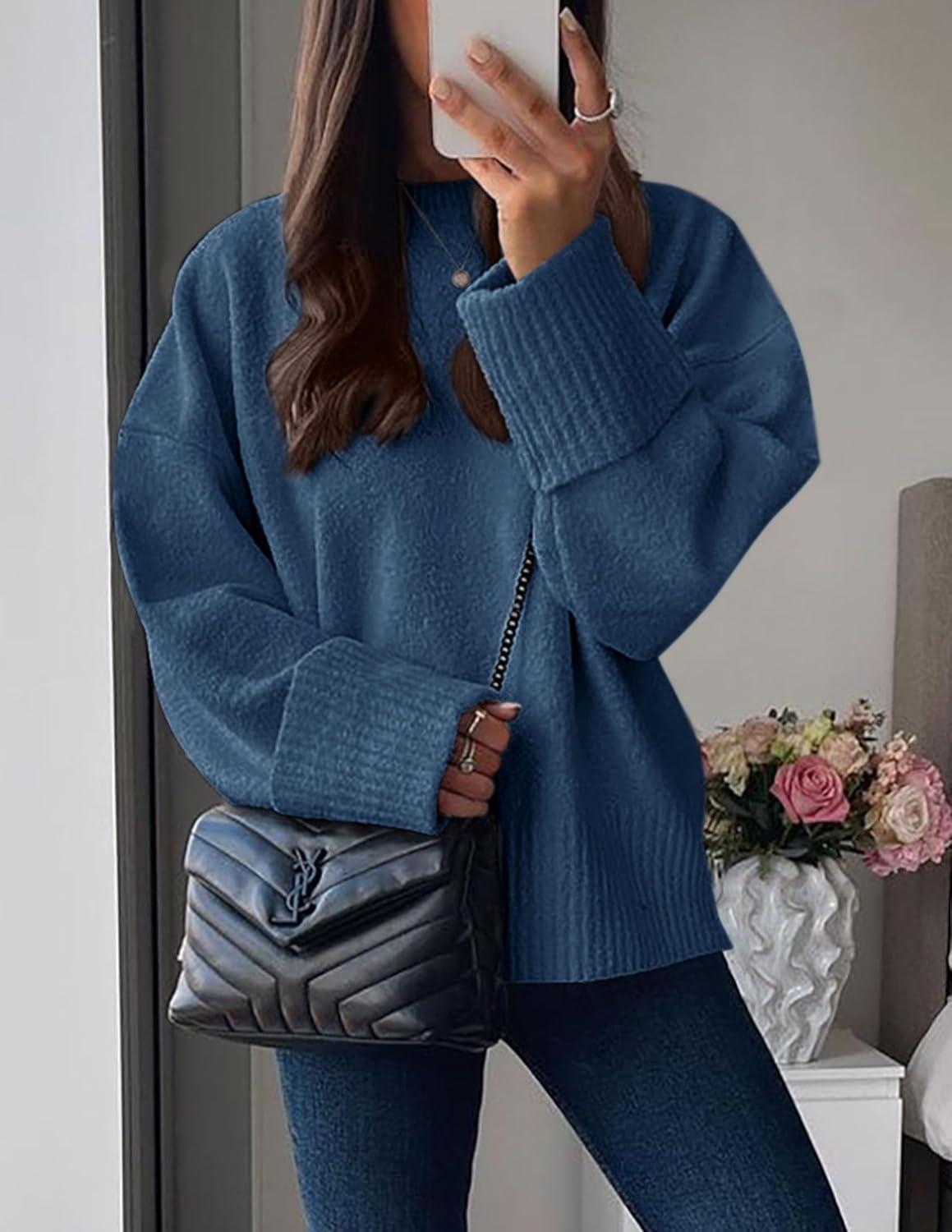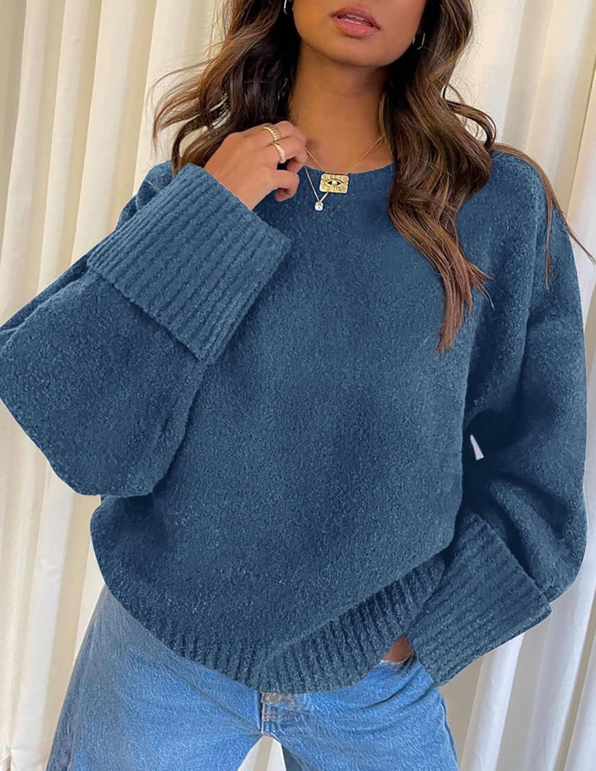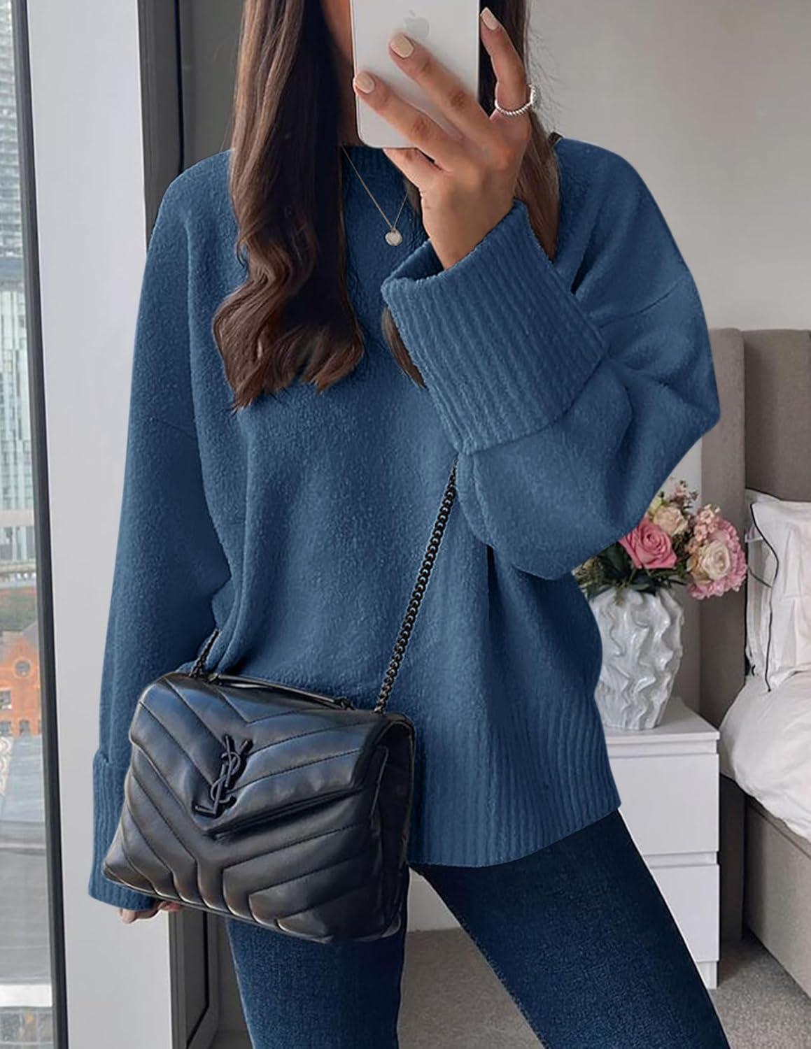 PRETTYGARDEN Women’s Fall Oversized Sweaters Casual Crewneck Pullover Long Sleeve Fuzzy Chunky Knit Tops Blouse(Dusty Blue)