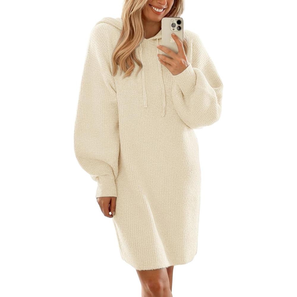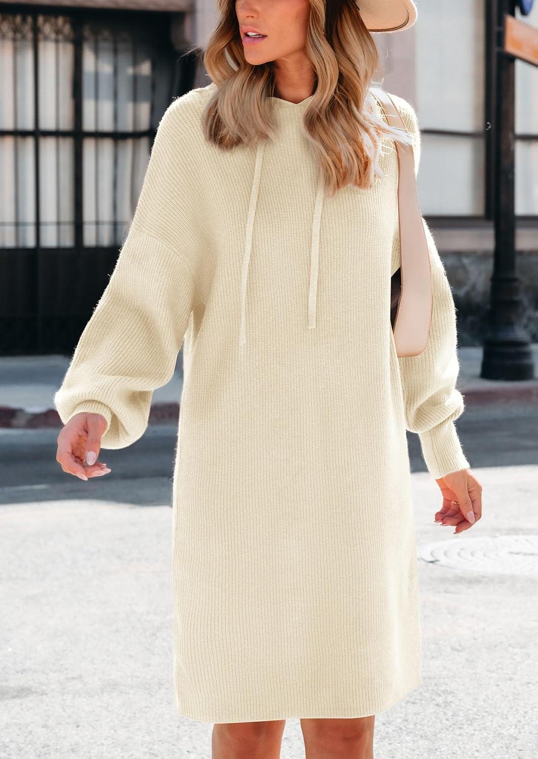 PRETTYGARDEN Womens Fall Sweater Dress Casual Long Sleeve Chunky Knit Pullover Oversized Hoodie Tunic Sweaters Winter Clothes(Beige White)