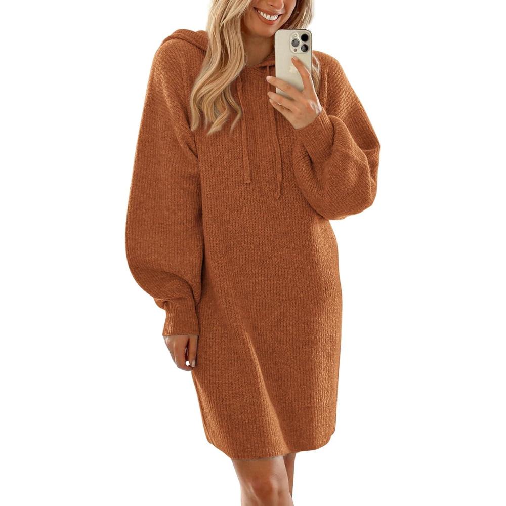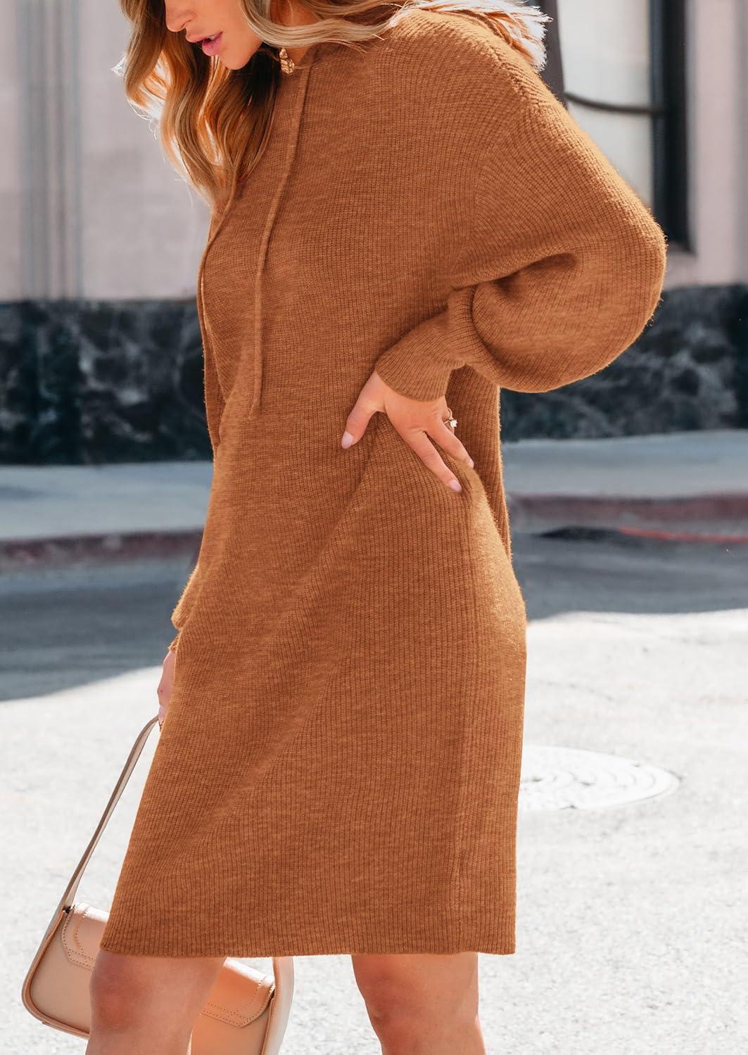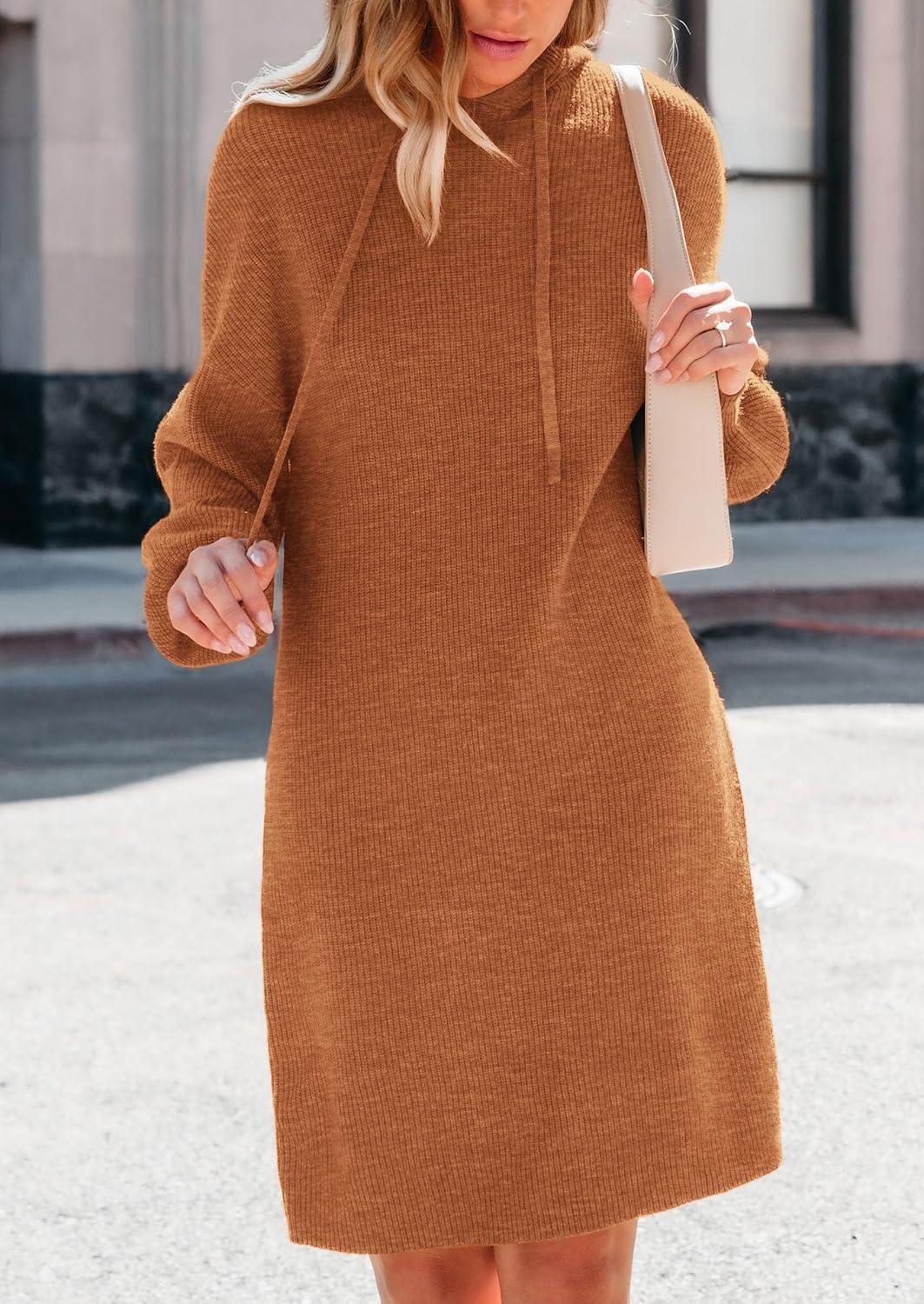 PRETTYGARDEN Womens Fall Sweater Dress Casual Long Sleeve Chunky Knit Pullover Oversized Hoodie Tunic Sweaters Winter Clothes(Caramel)