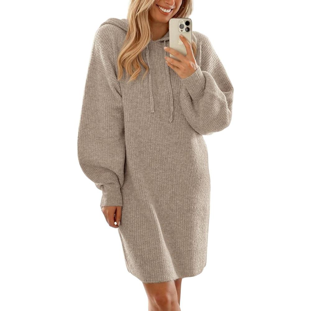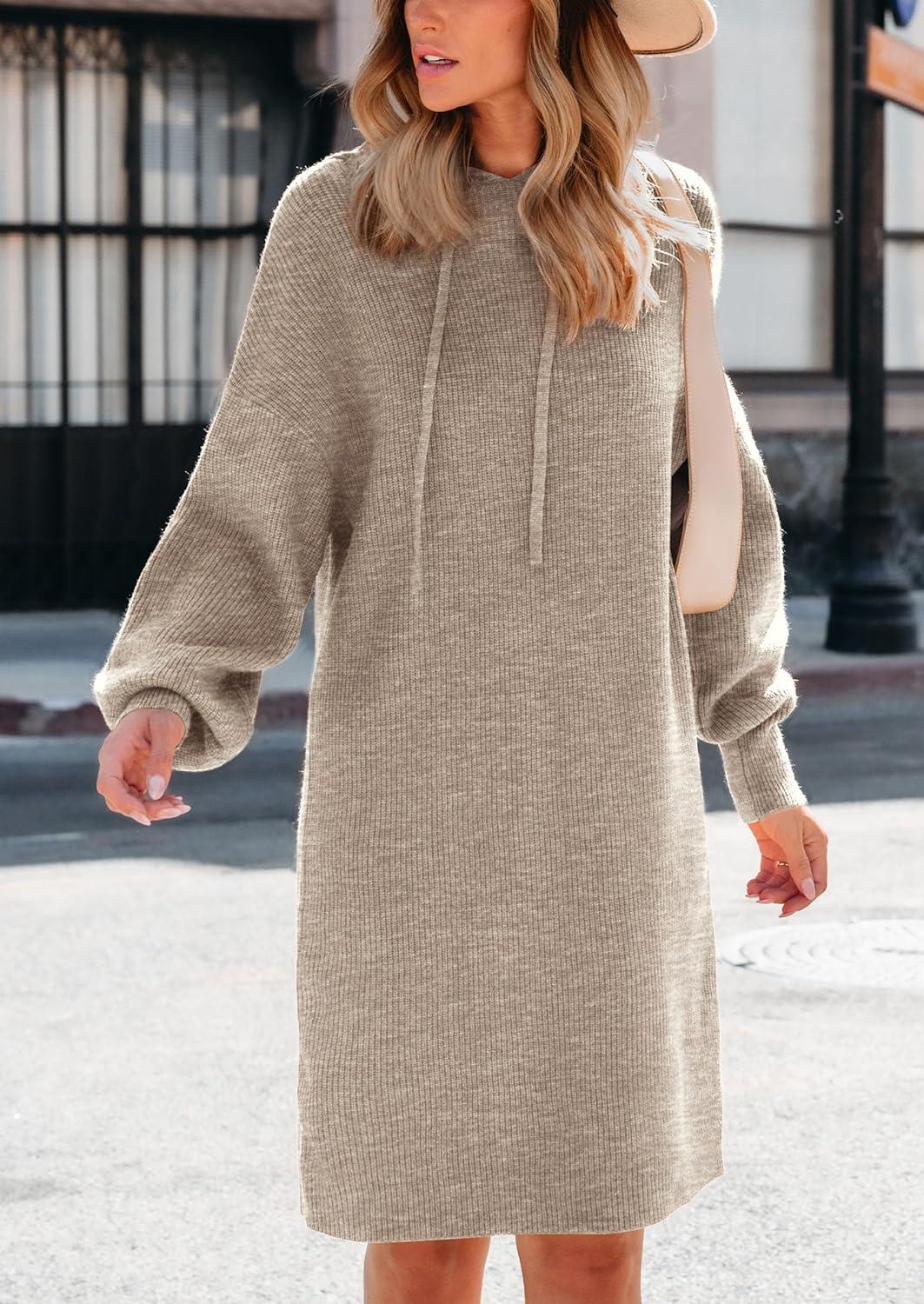 PRETTYGARDEN Womens Fall Sweater Dress Casual Long Sleeve Chunky Knit Pullover Oversized Hoodie Tunic Sweaters Winter Clothes(Khaki)