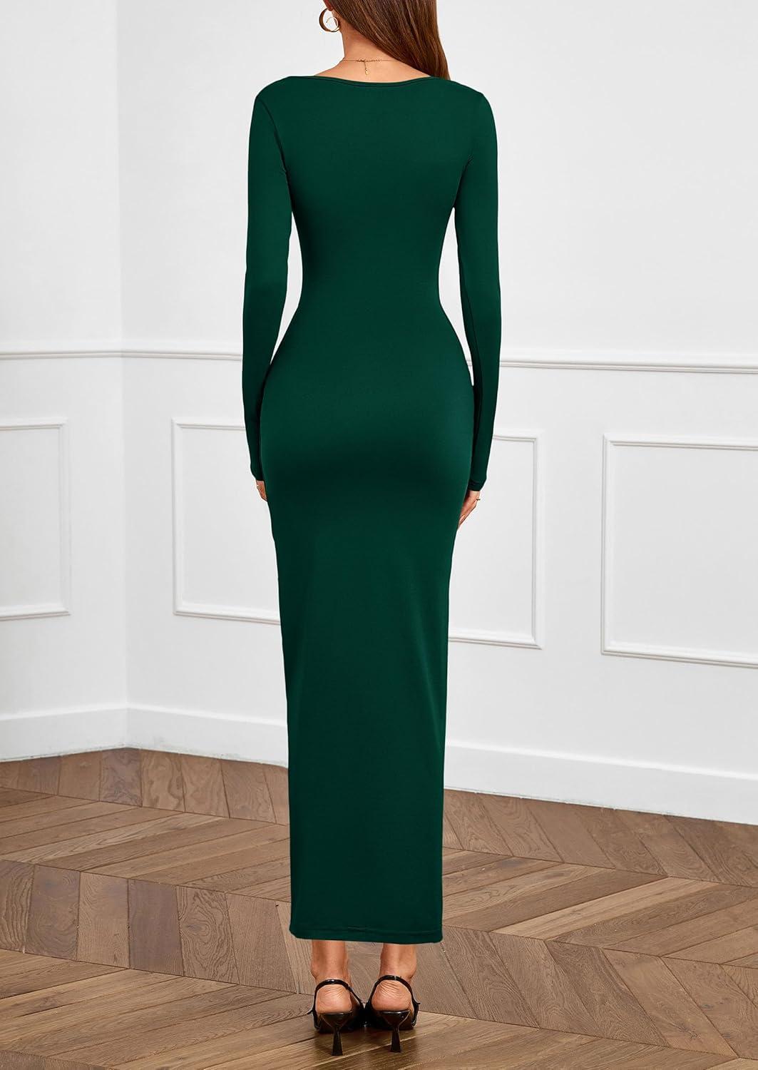PRETTYGARDEN Women’s Fall Wedding Guest Cocktail Midi Dresses Elegant Long Sleeve Bodycon Ruched Dress 2025 Fashion Clothing(Dark Green)