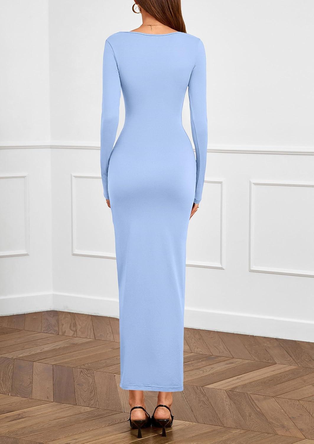 PRETTYGARDEN Women’s Fall Wedding Guest Cocktail Midi Dresses Elegant Long Sleeve Bodycon Ruched Dress 2025 Fashion Clothing(Light Blue)