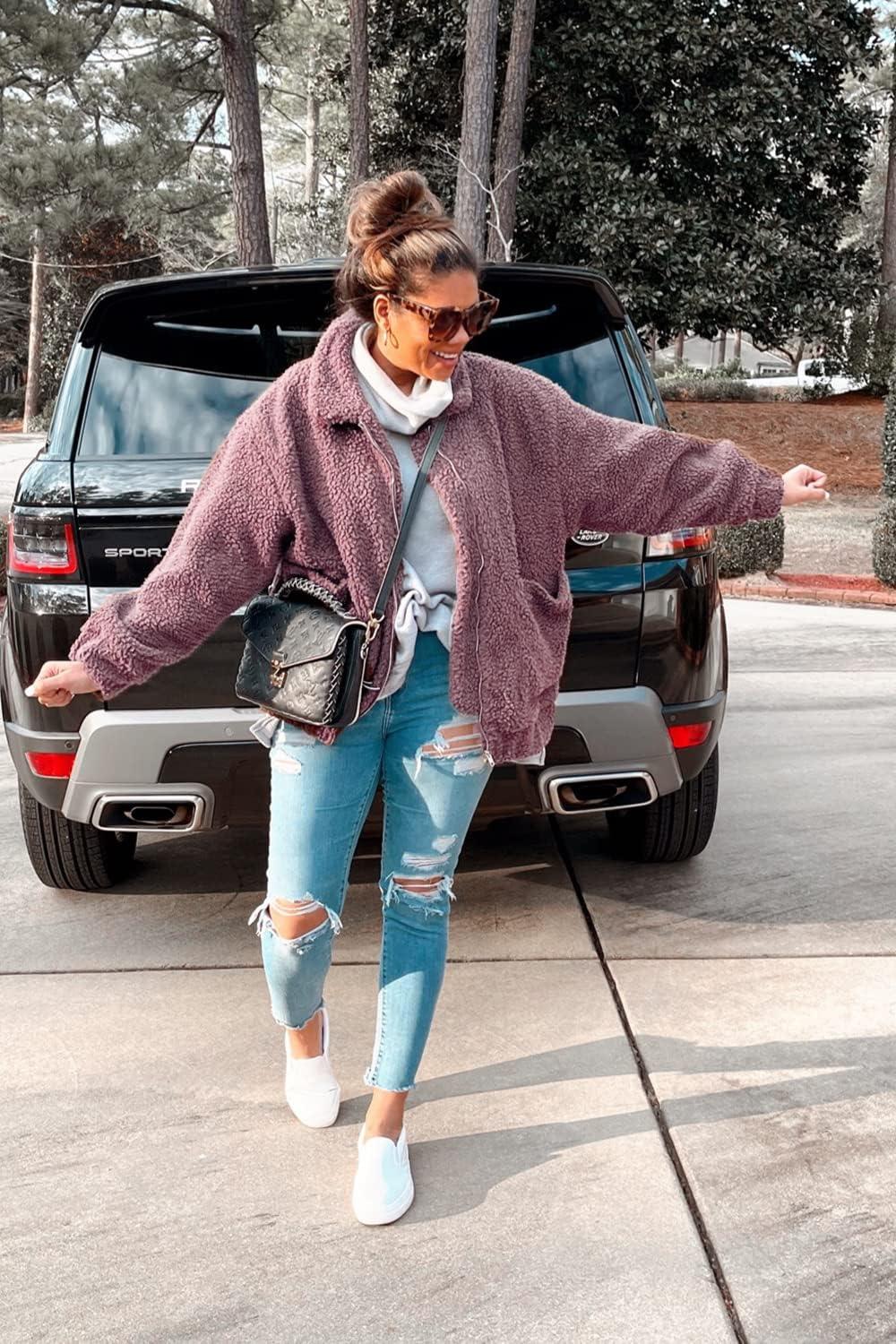Get the PRETTYGARDEN Women’s Fashion Winter Coats Sherpa Fleece Faux Fur Shearling Oversized Trendy Jackets Warm Outerwear Clothing(Dark Pink) you want at a discounted price during our markdown sale event.