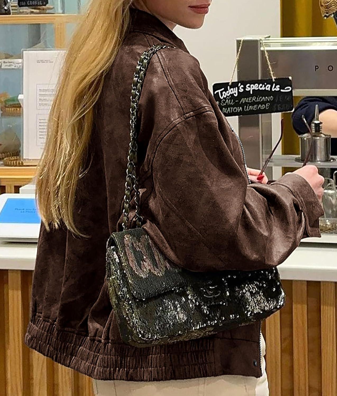 Be the first to review “PRETTYGARDEN Women’s Faux Leather Motorcycle Jacket Trendy Fall Spring Clothes Oversized Zip Up Winter Coat Outerwear(Style2-brown)”